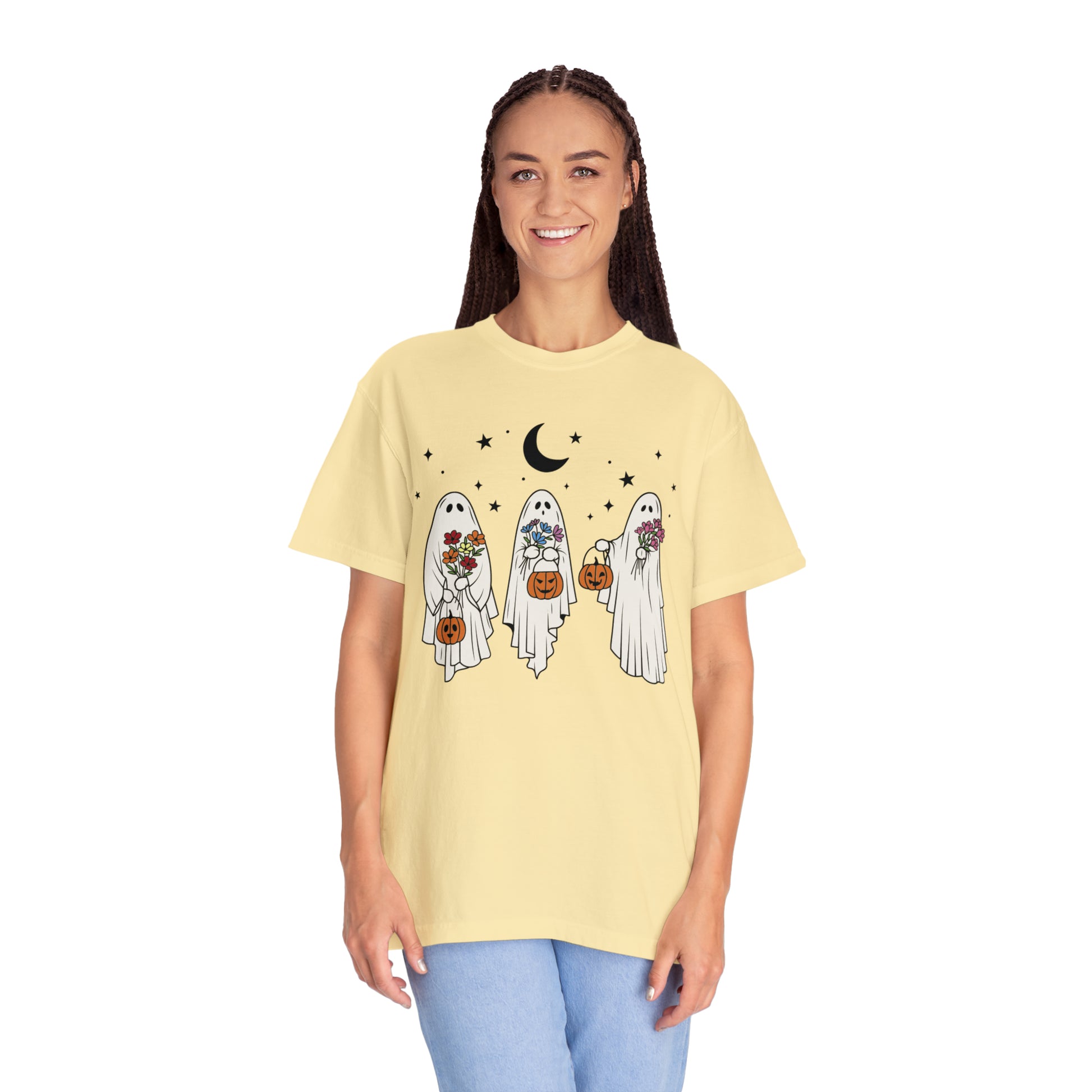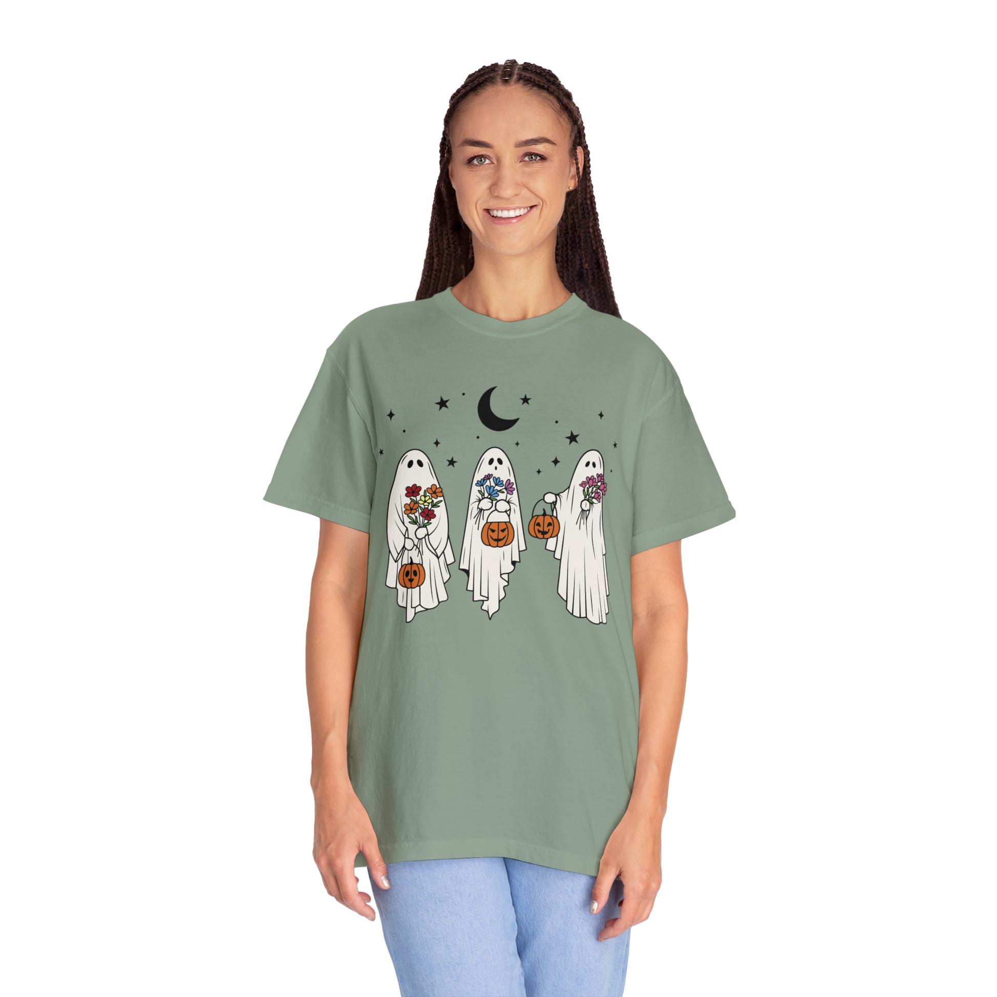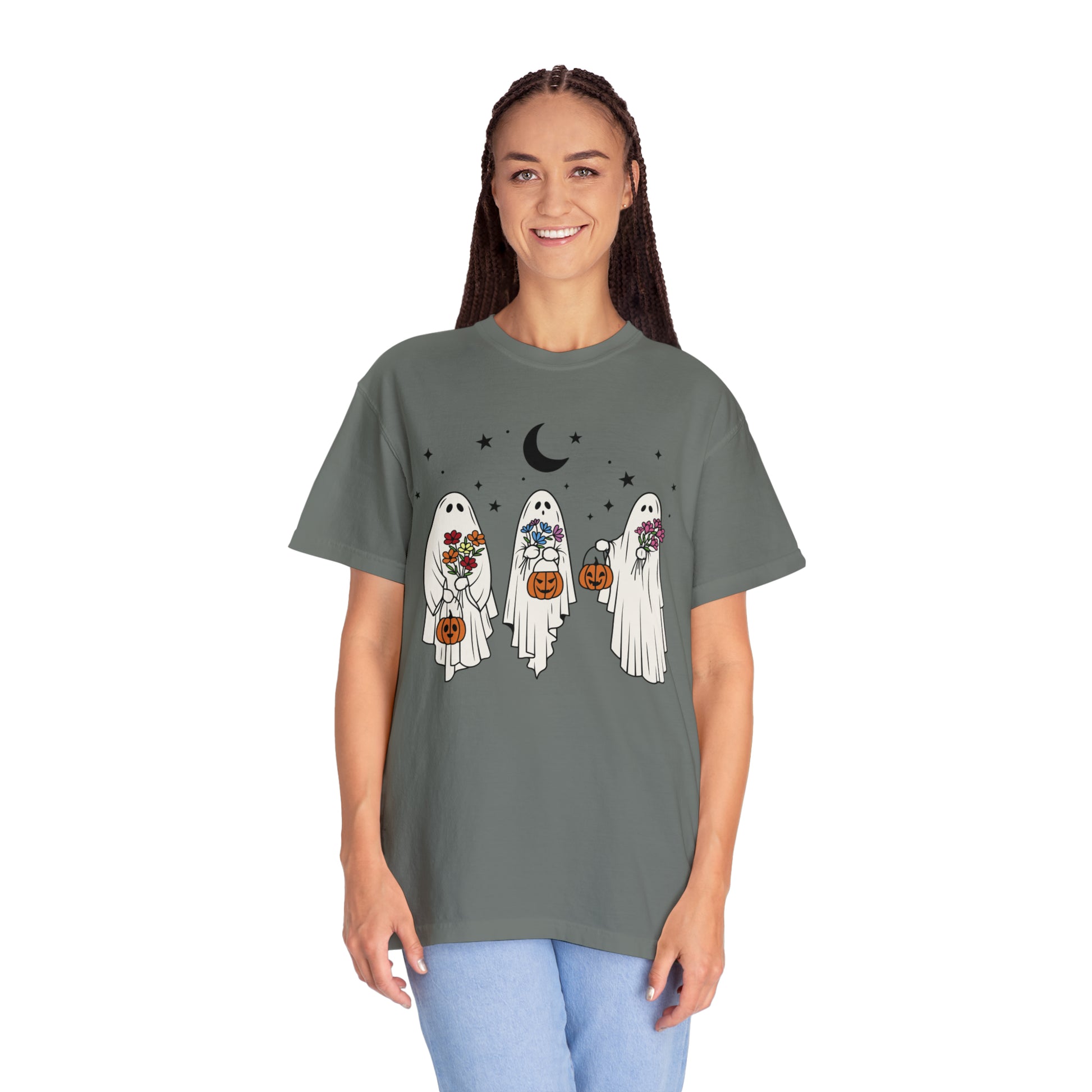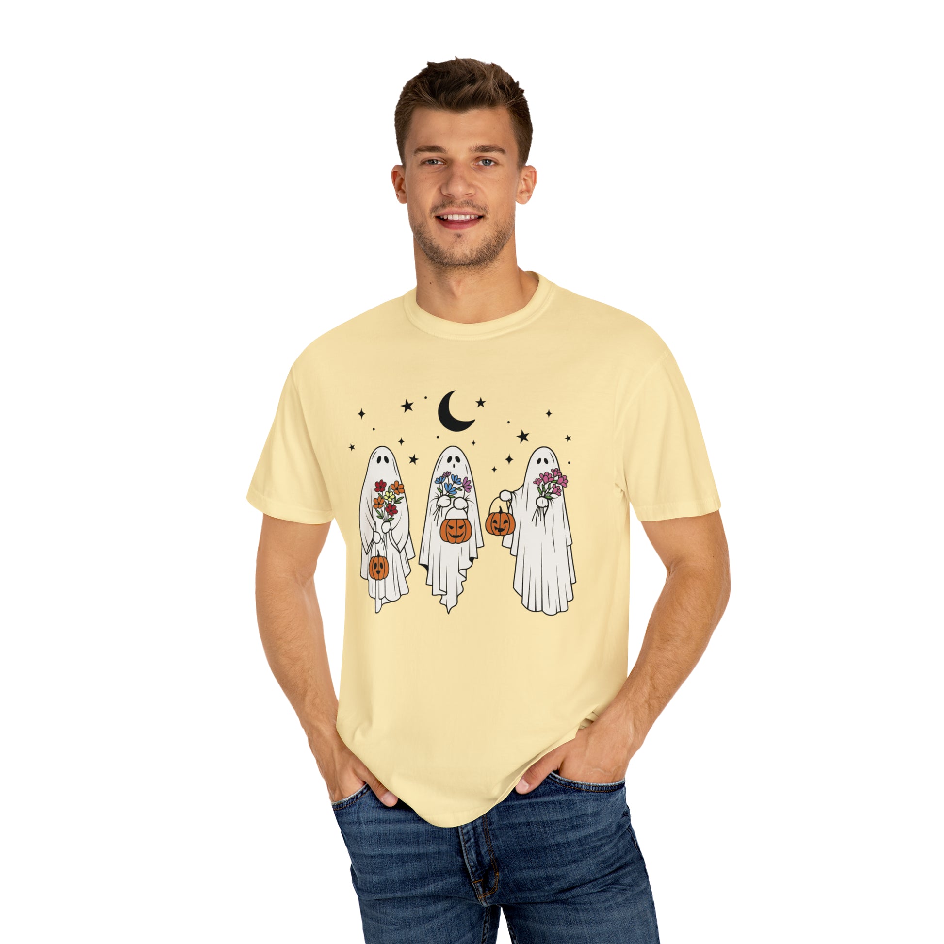 Boho Trick or Treating Ghosts holding Flowers and Pumpkins Comfort Colors Unisex Garment-Dyed T-shirt
