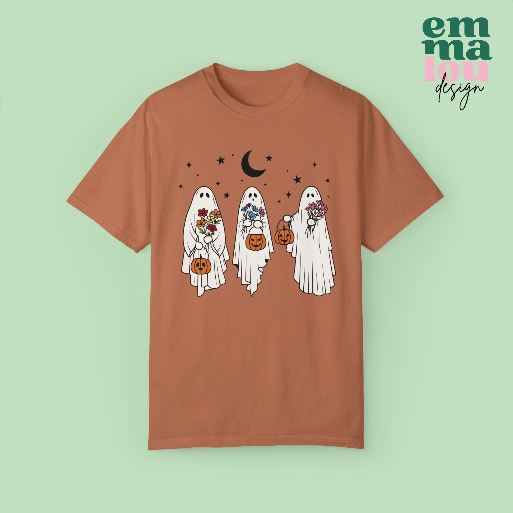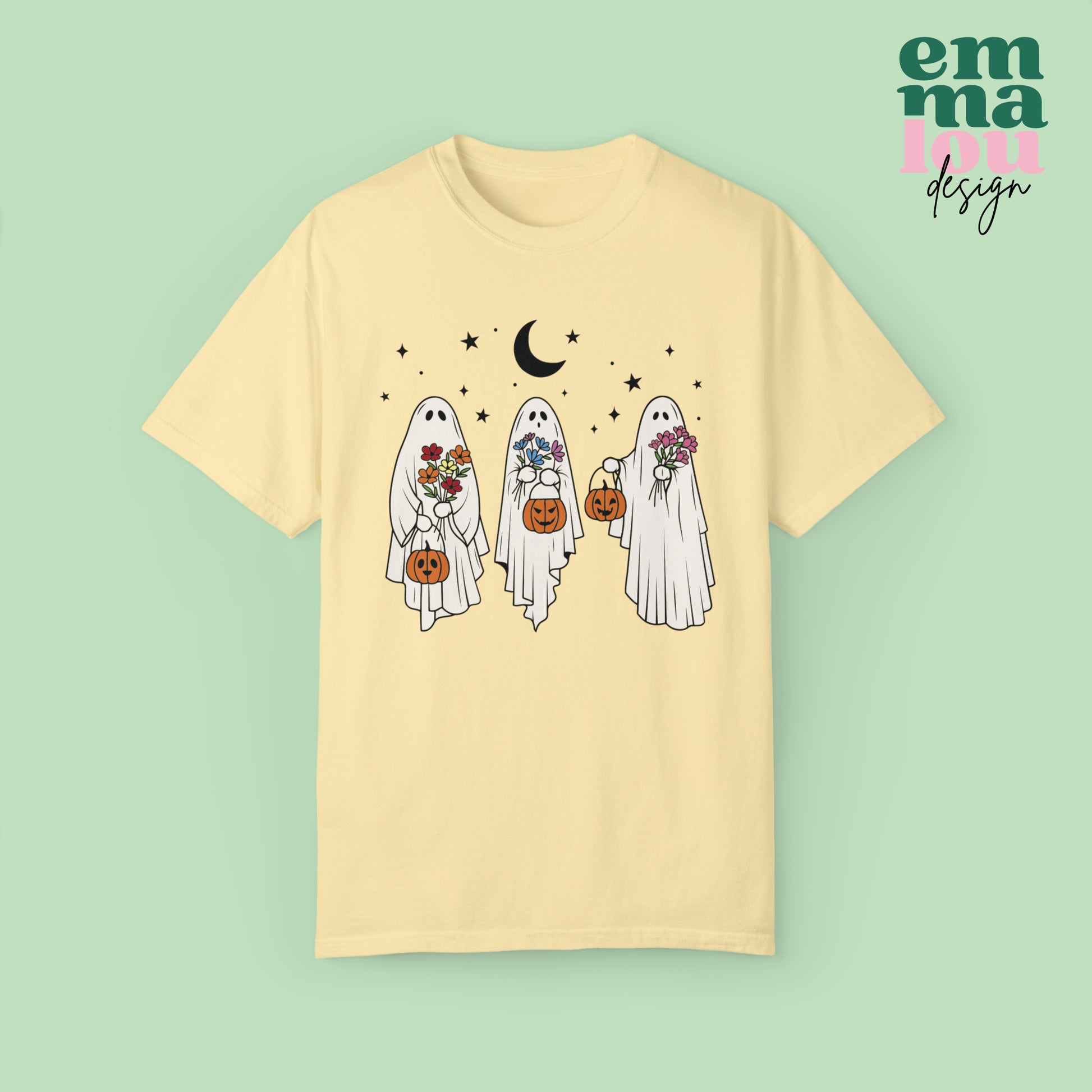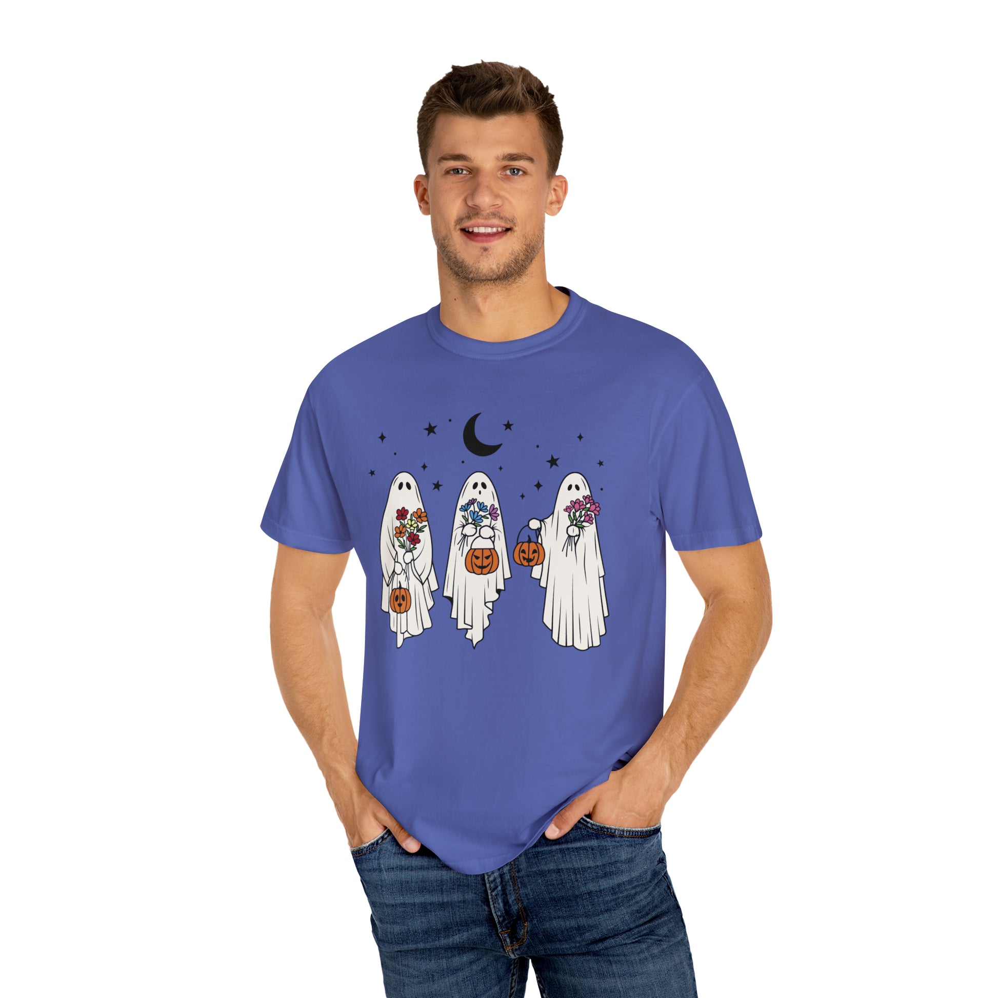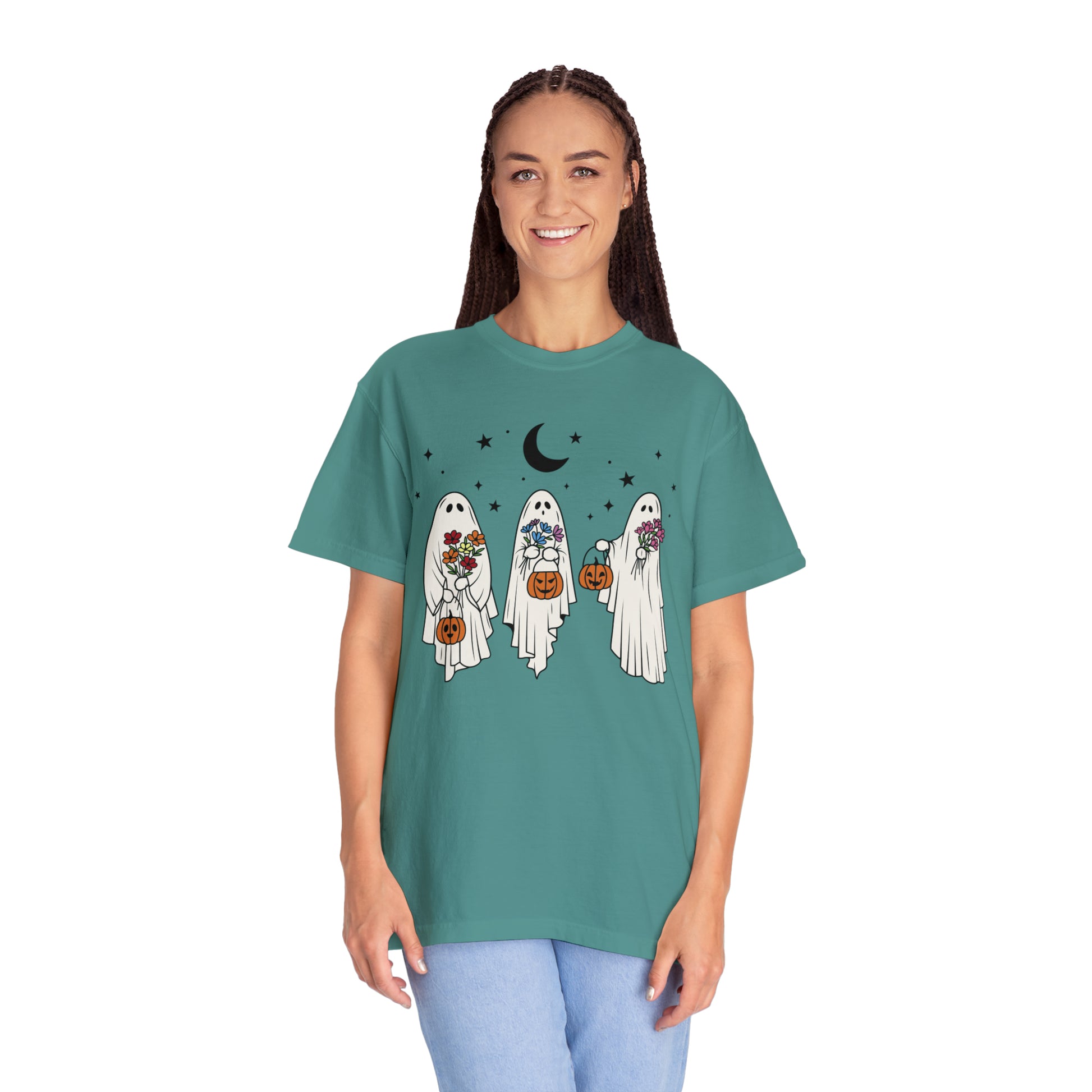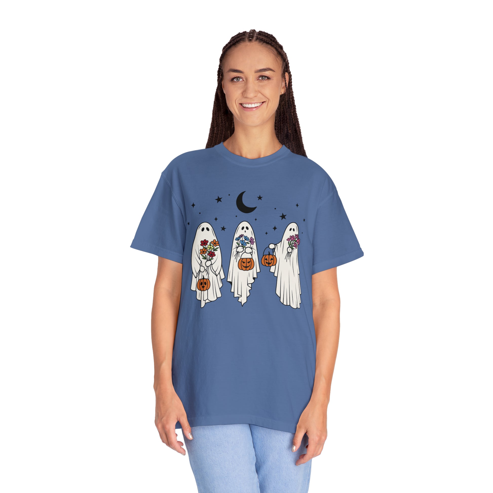 Boho Trick or Treating Ghosts holding Flowers and Pumpkins Comfort Colors Unisex Garment-Dyed T-shirt