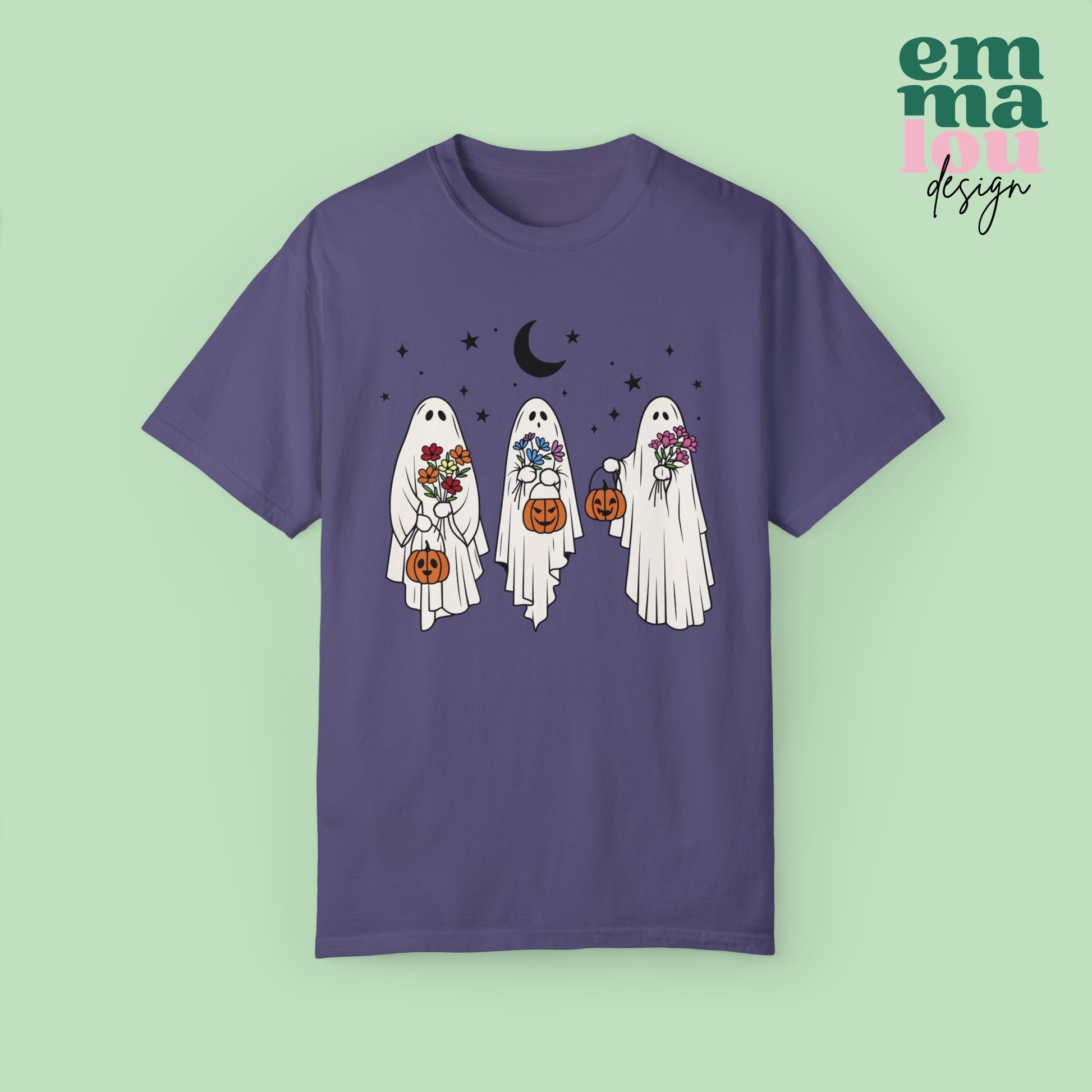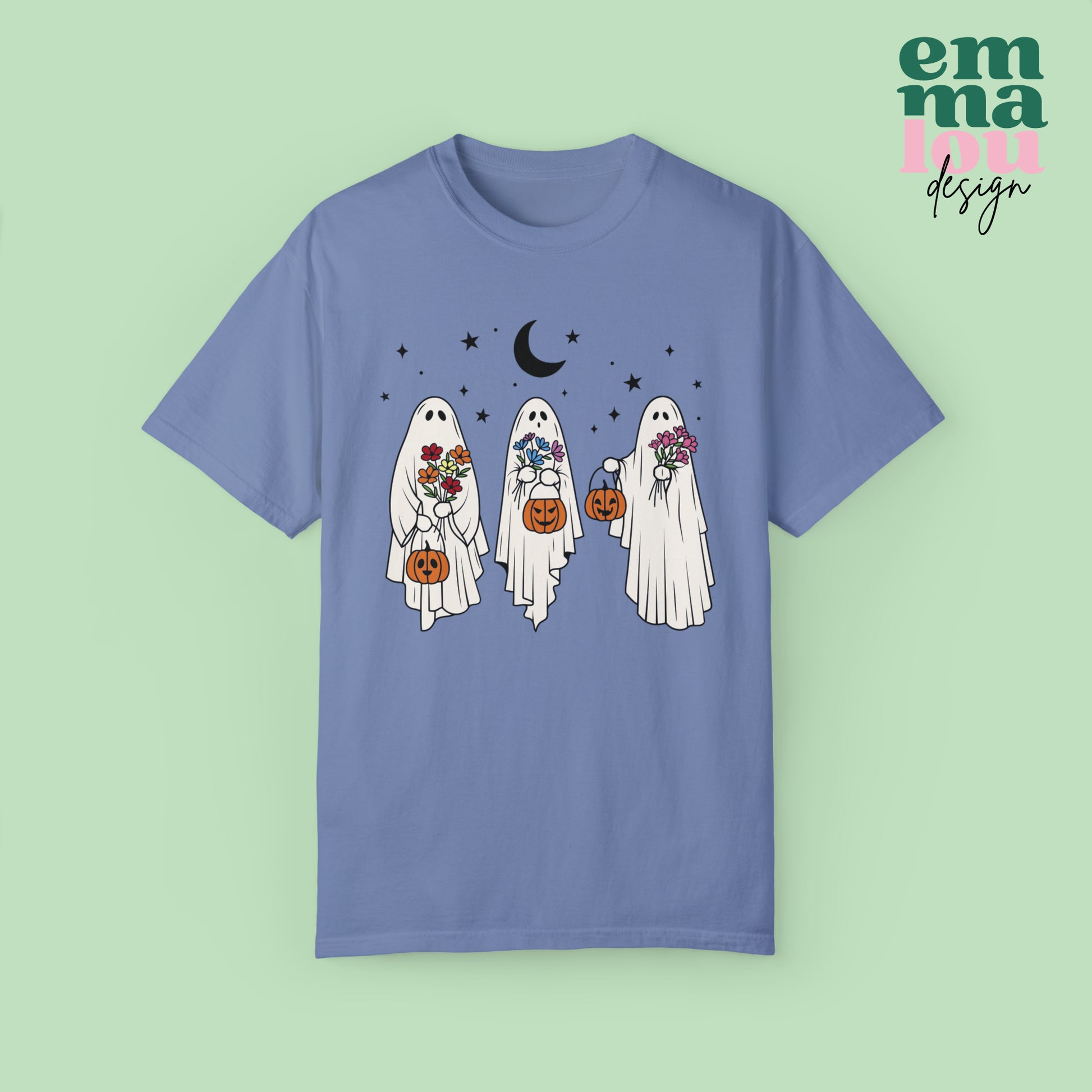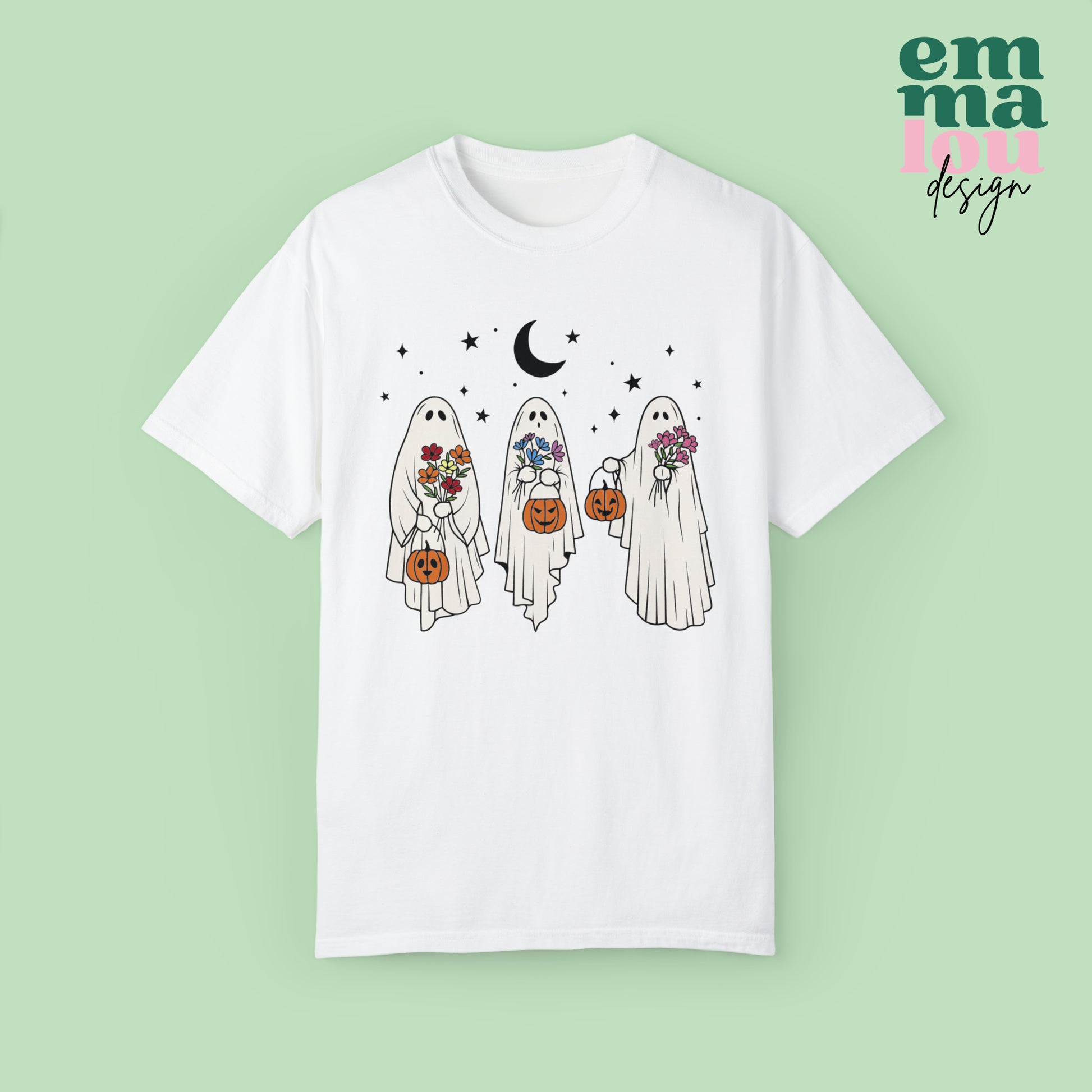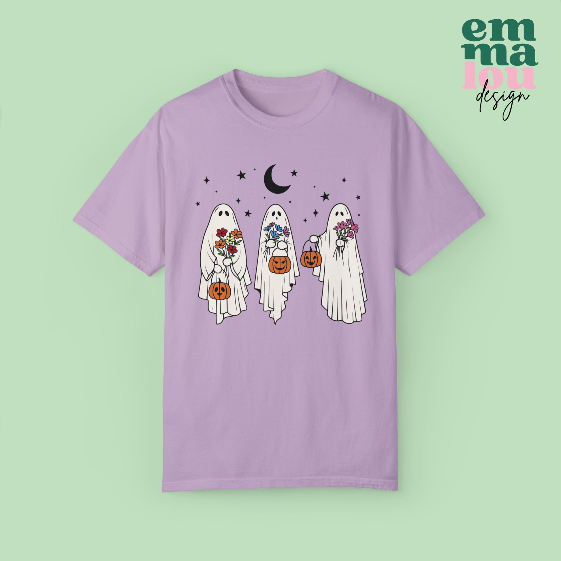 Boho Trick or Treating Ghosts holding Flowers and Pumpkins Comfort Colors Unisex Garment-Dyed T-shirt