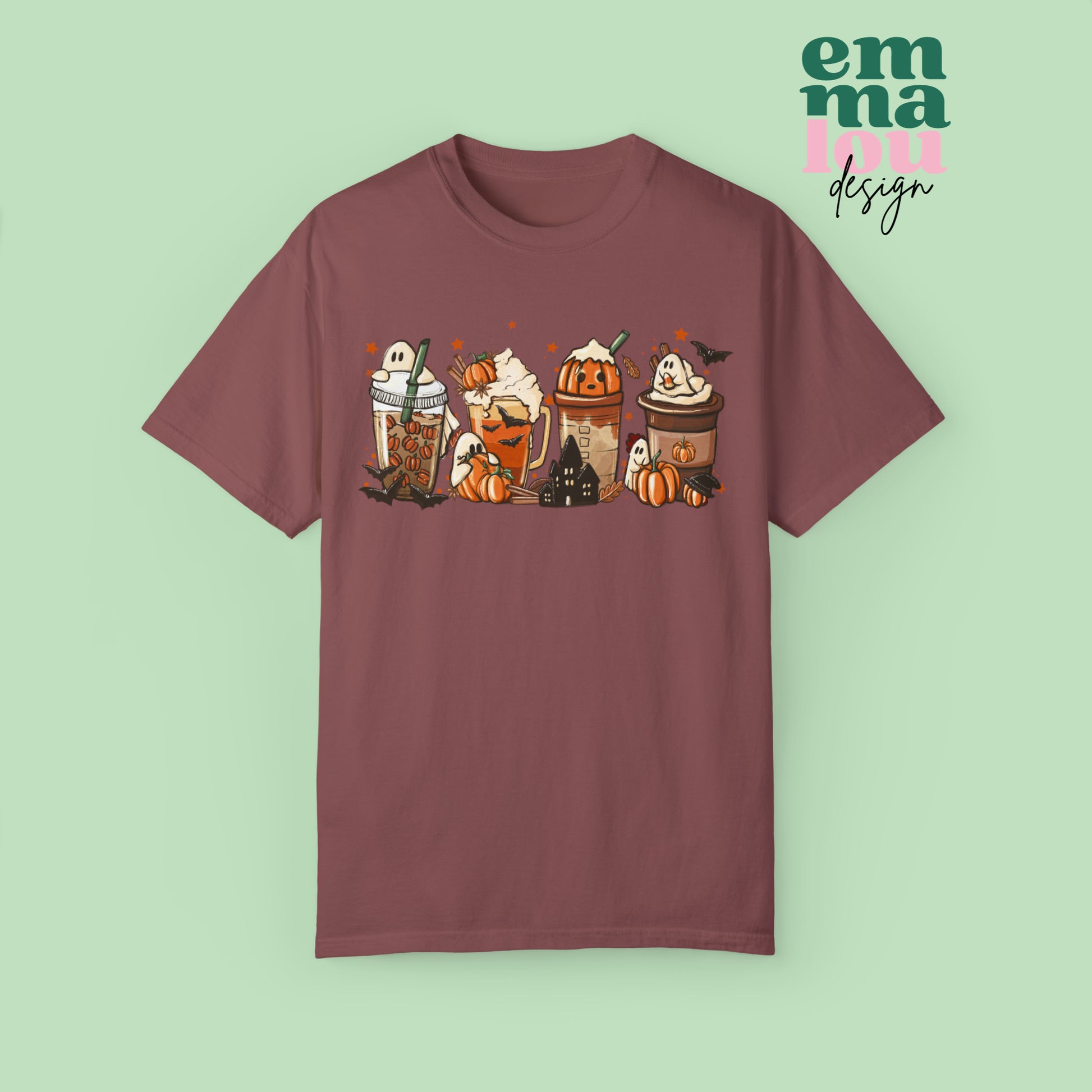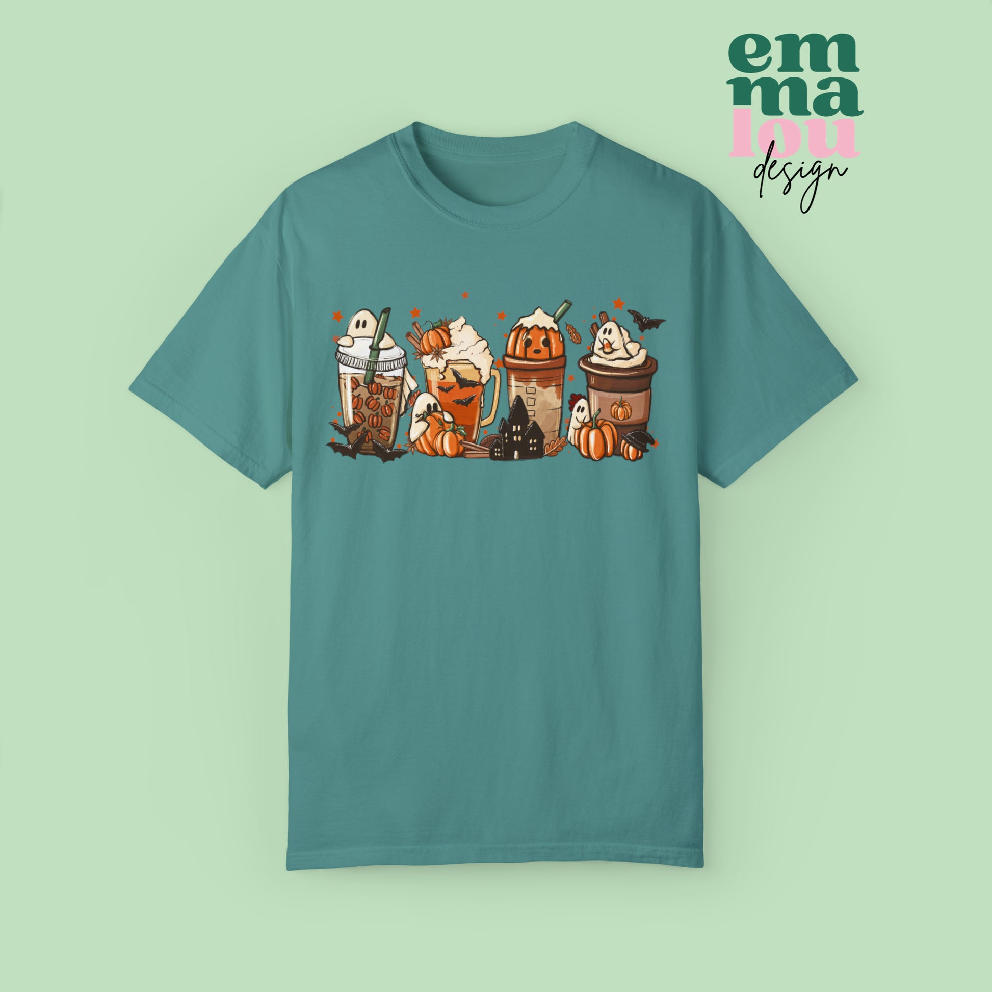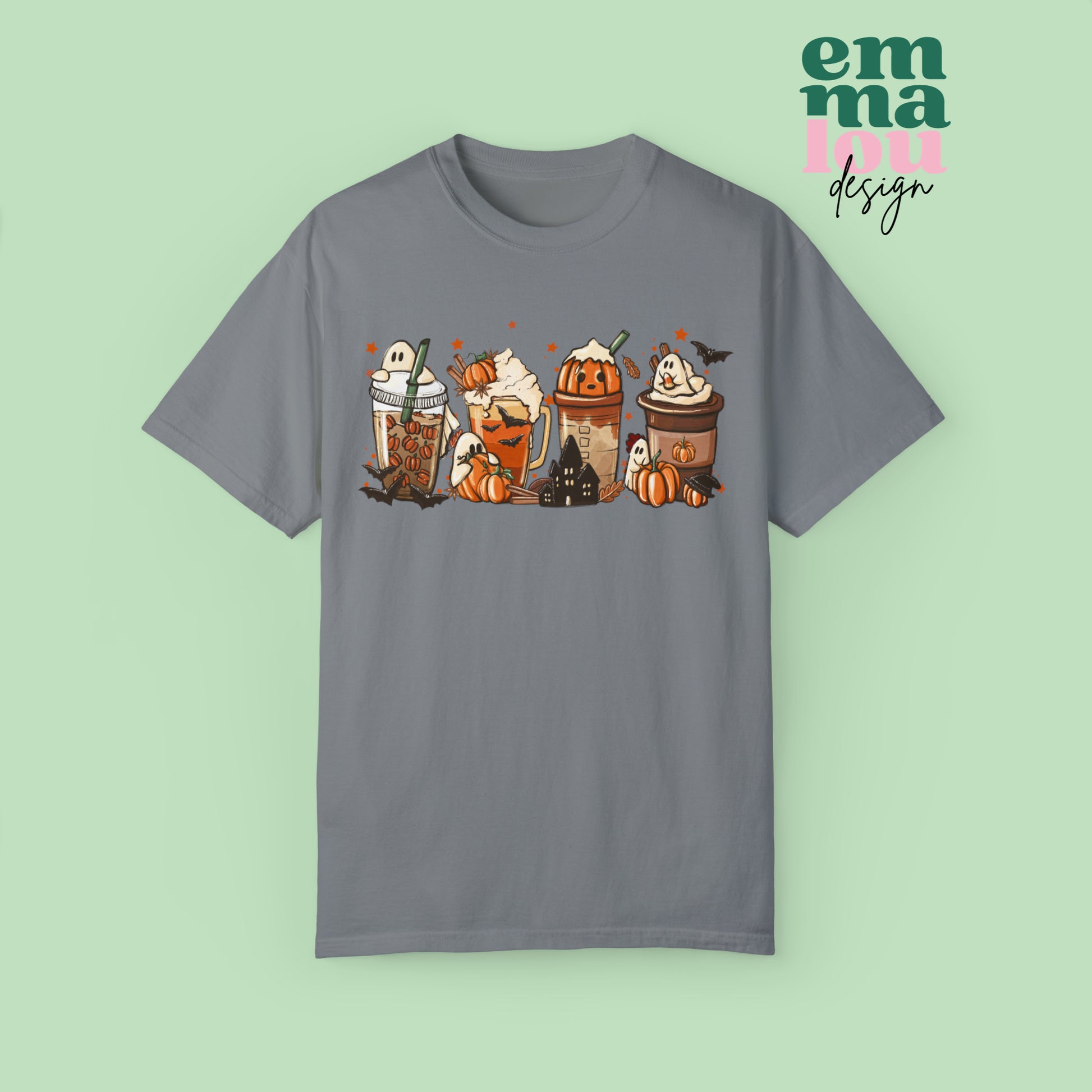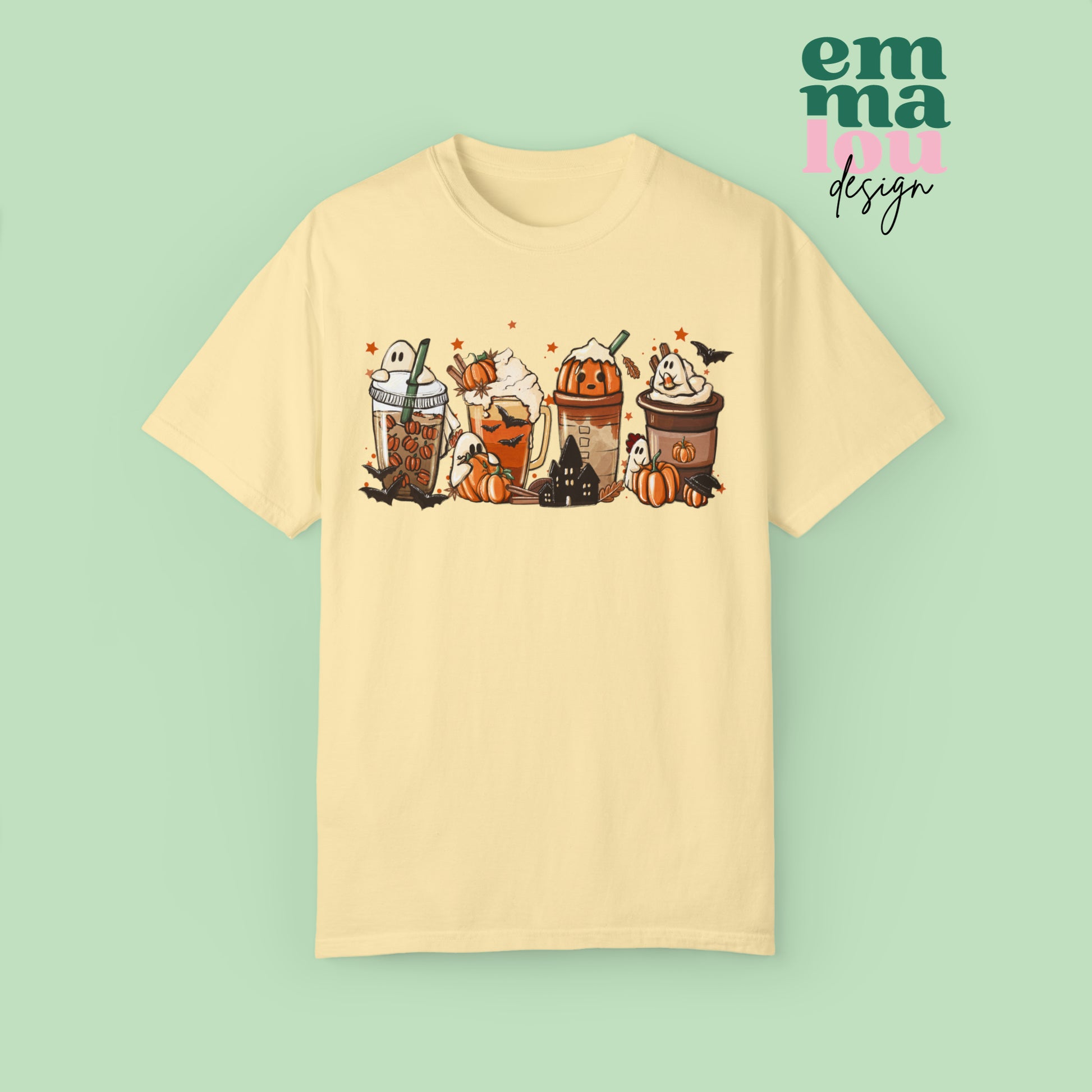 Boo Fall Coffee Latte featuring Ghosts, Bats, and Pumpkins Halloween Comfort Colors Unisex Garment-Dyed T-shirt