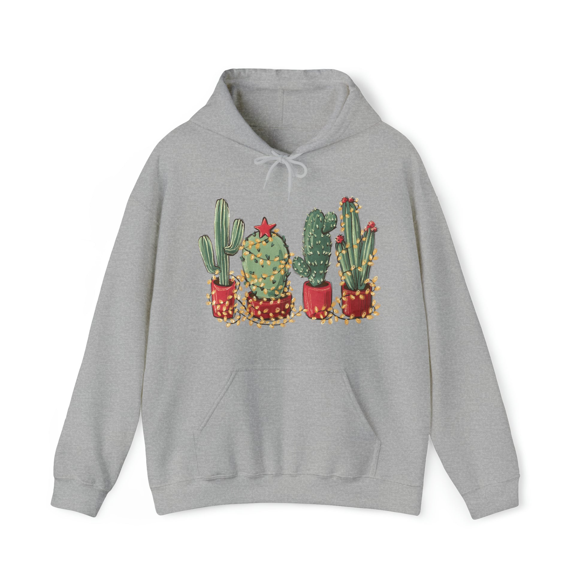 Cactus Christmas Lights Plant Lover Unisex Hooded Sweatshirt