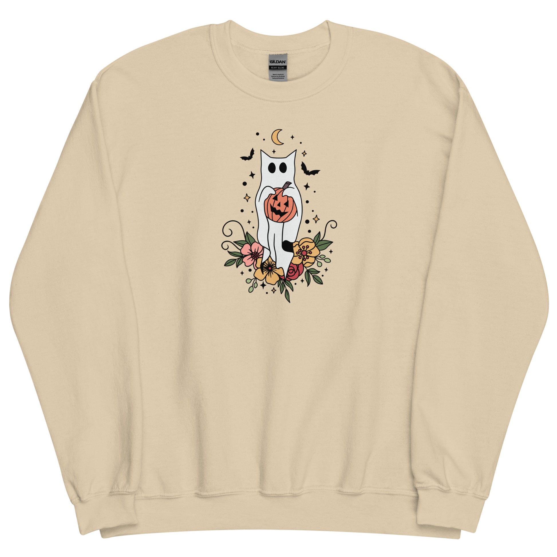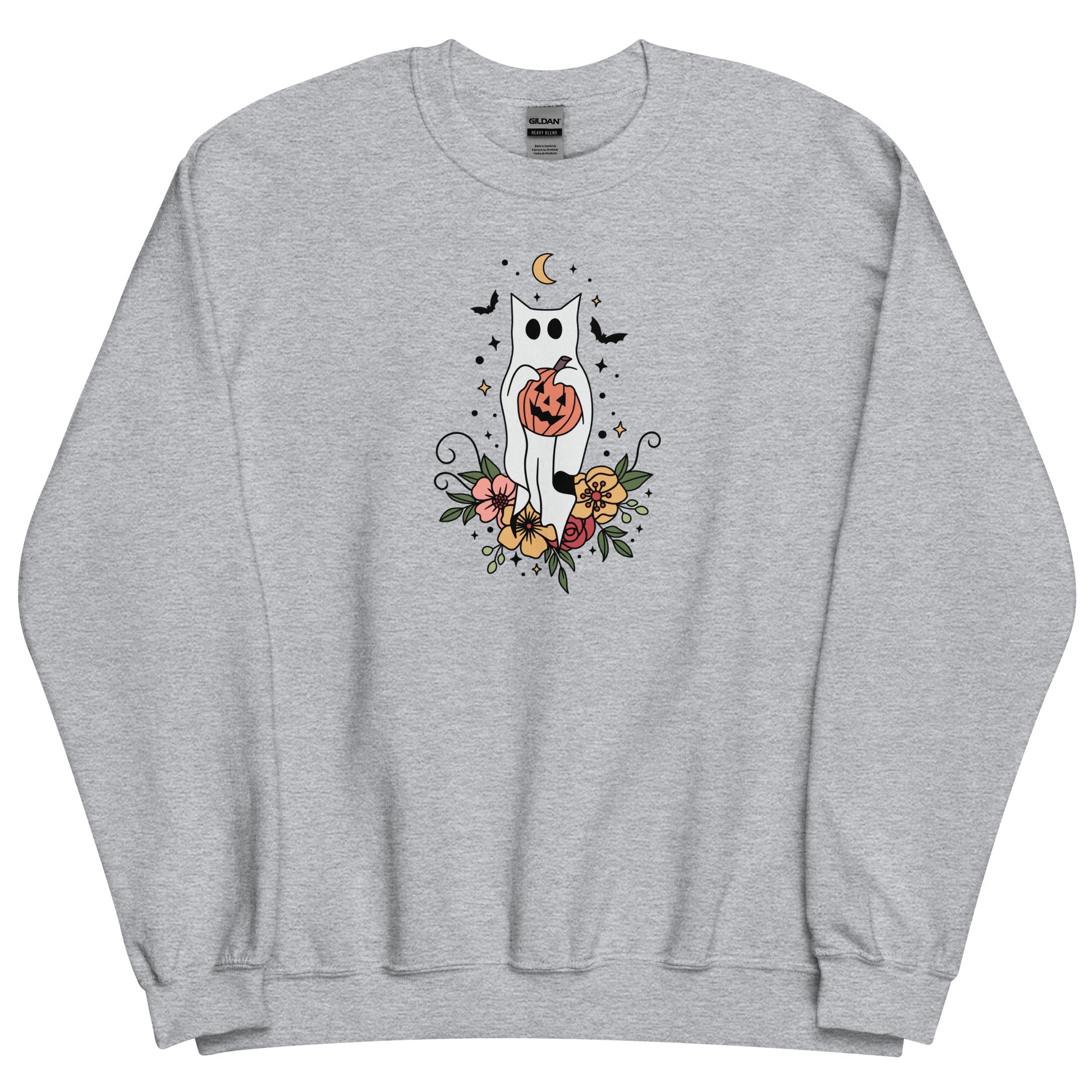 Floral Cat Ghost Halloween Unisex Sweatshirt