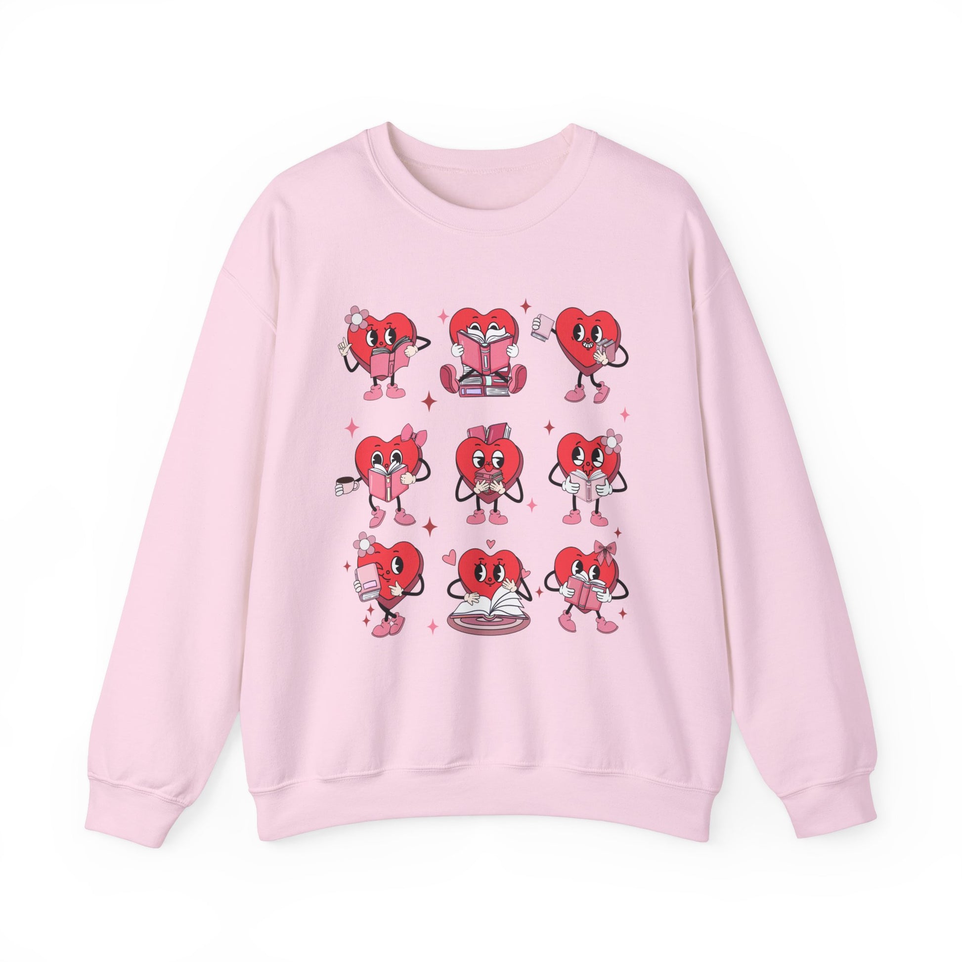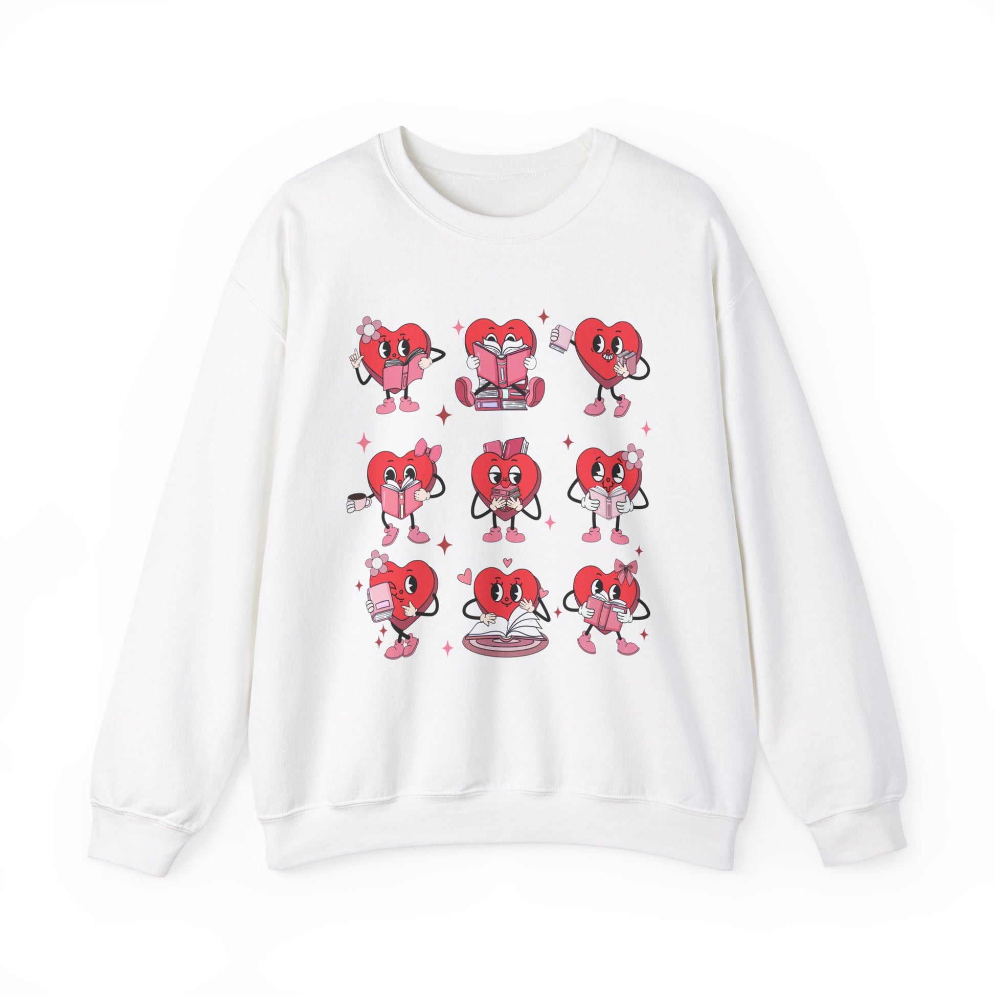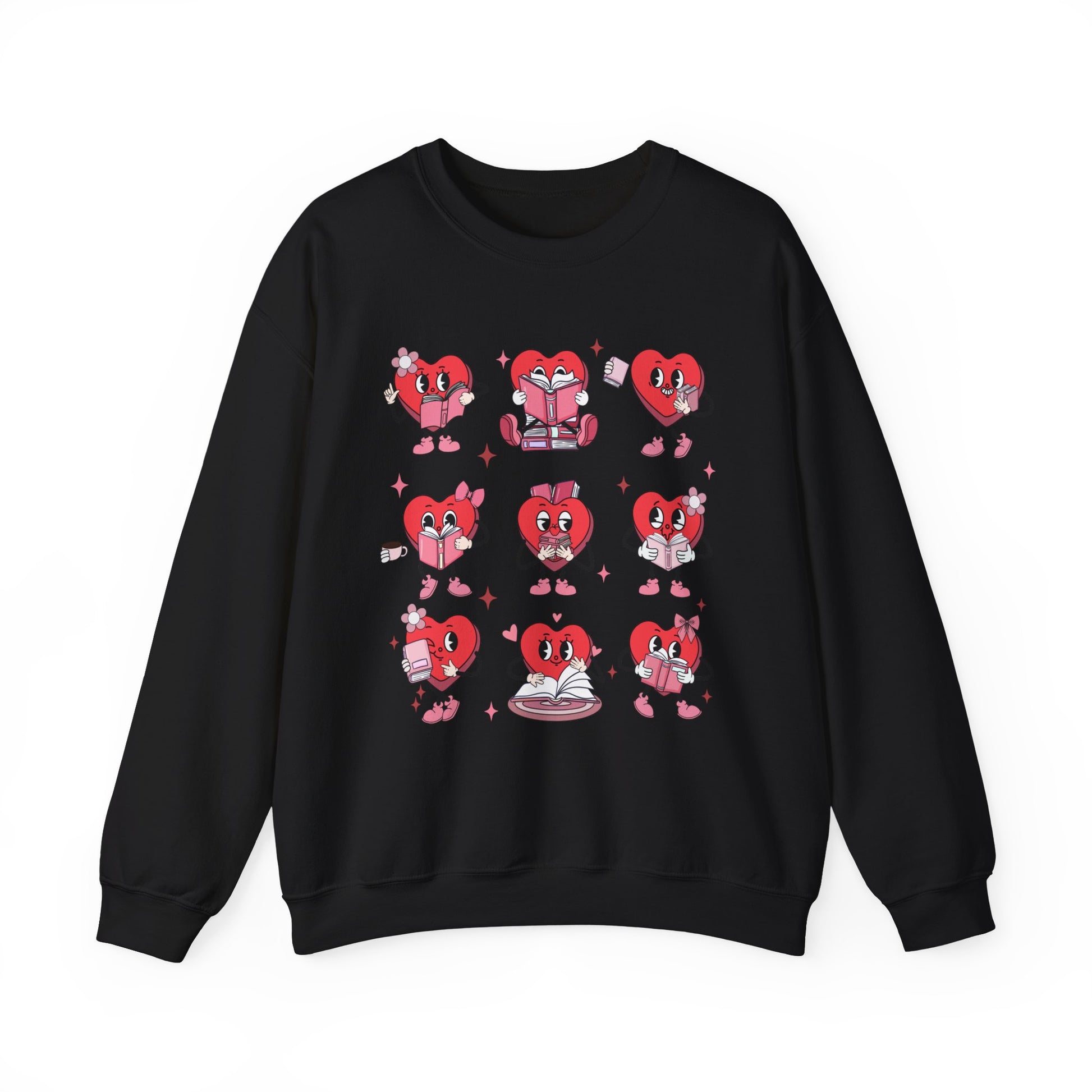 Embrace the joy of reading and express your love for Valentine's Day with our heart characters sweatshirt. It's a versatile and heartwarming addition to your wardrobe that will surely bring a smile to your face and those around you.