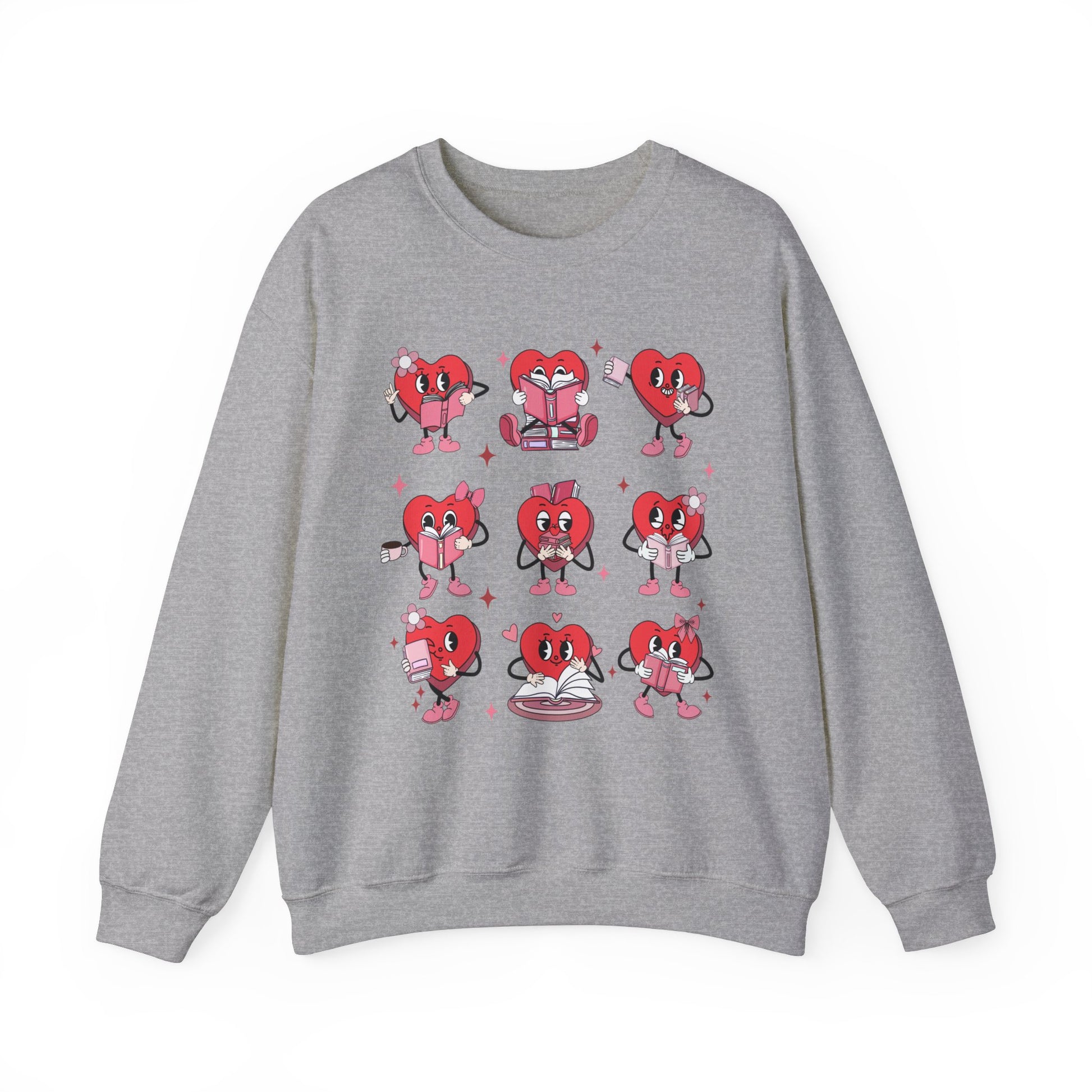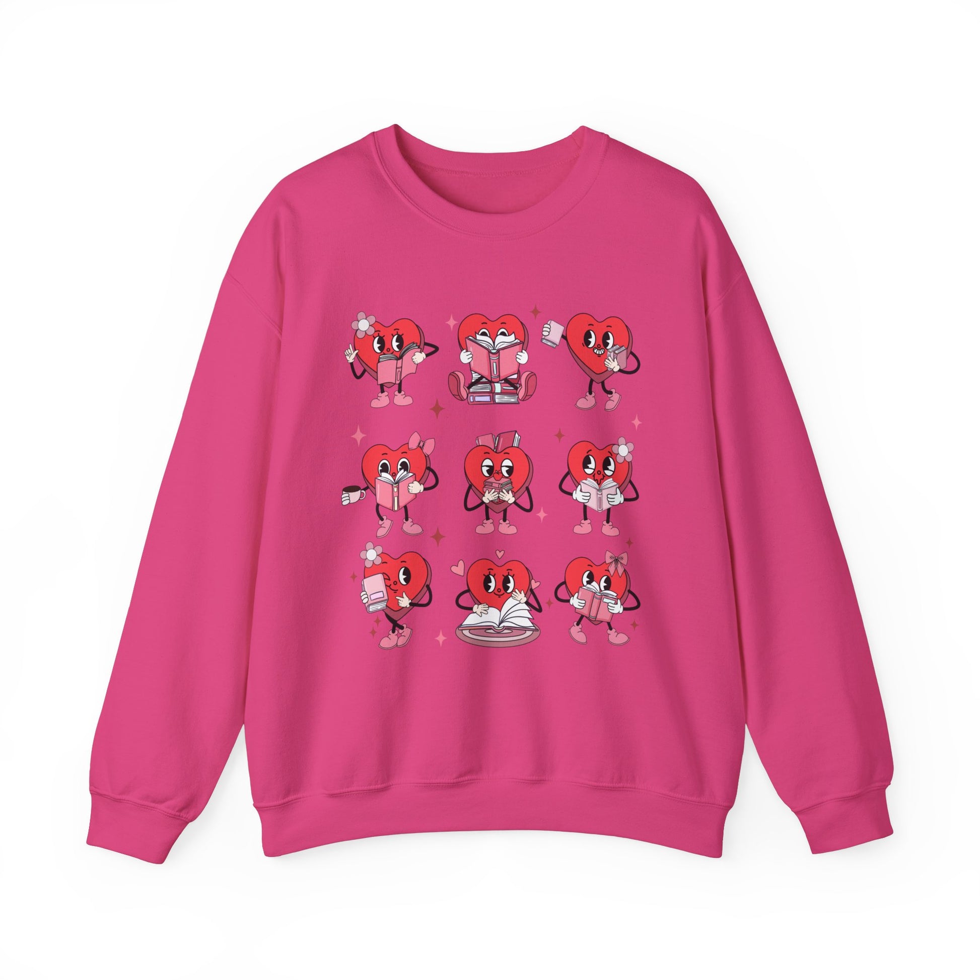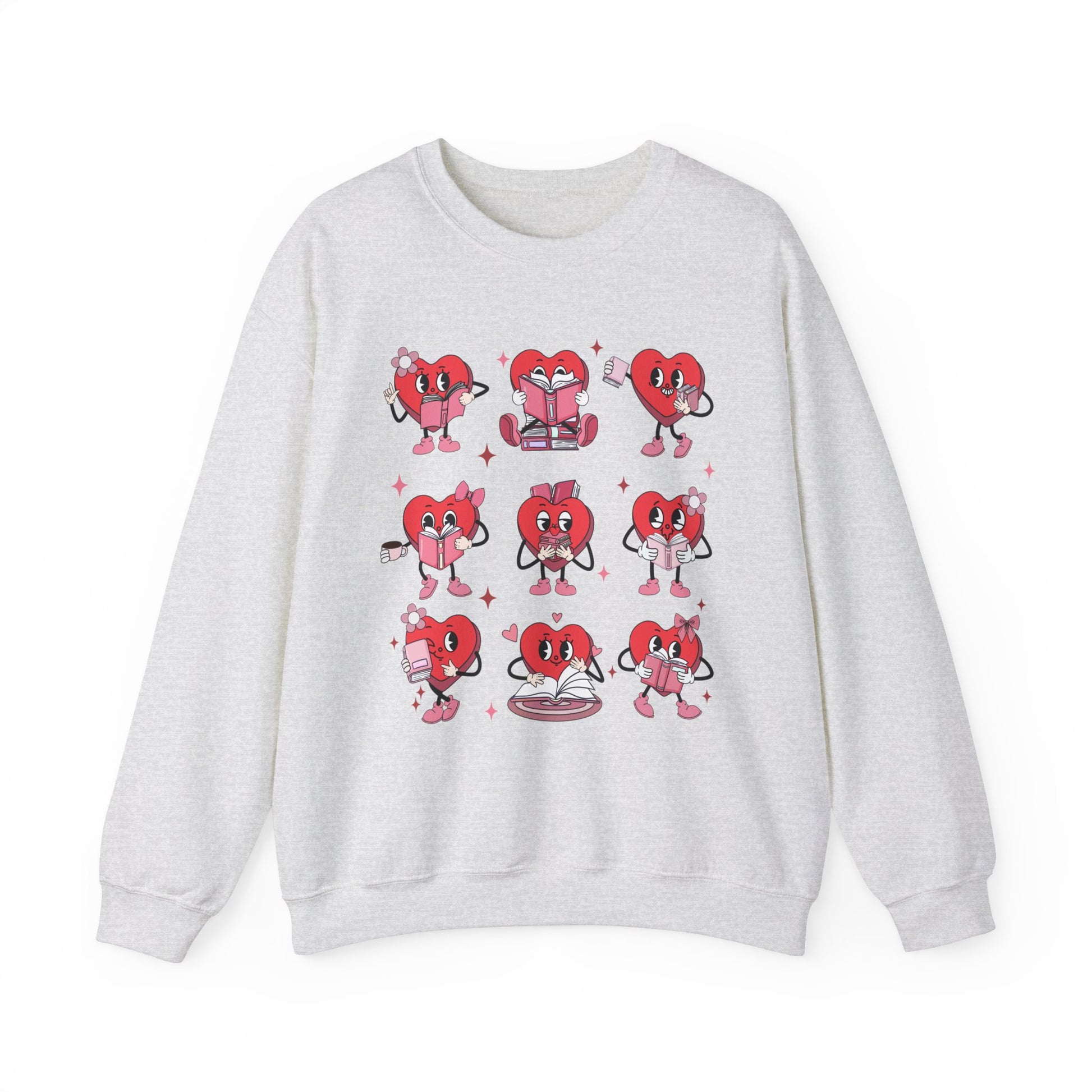 Embrace the joy of reading and express your love for Valentine's Day with our heart characters sweatshirt. It's a versatile and heartwarming addition to your wardrobe that will surely bring a smile to your face and those around you.