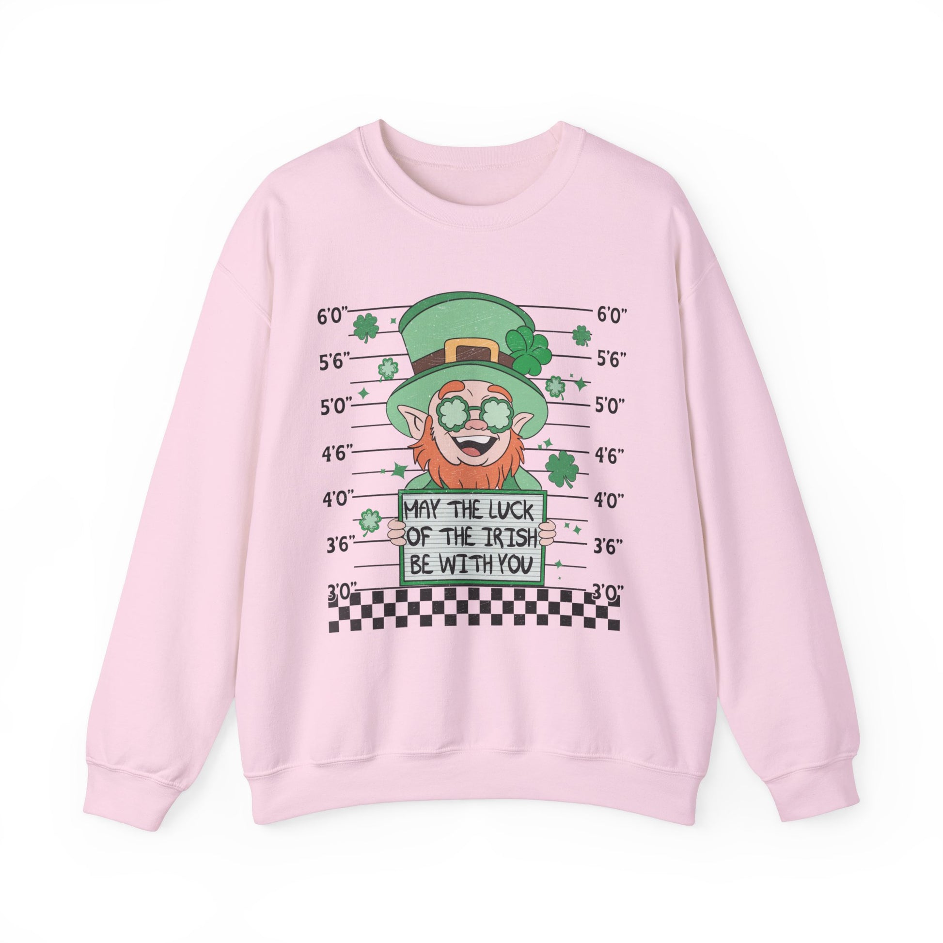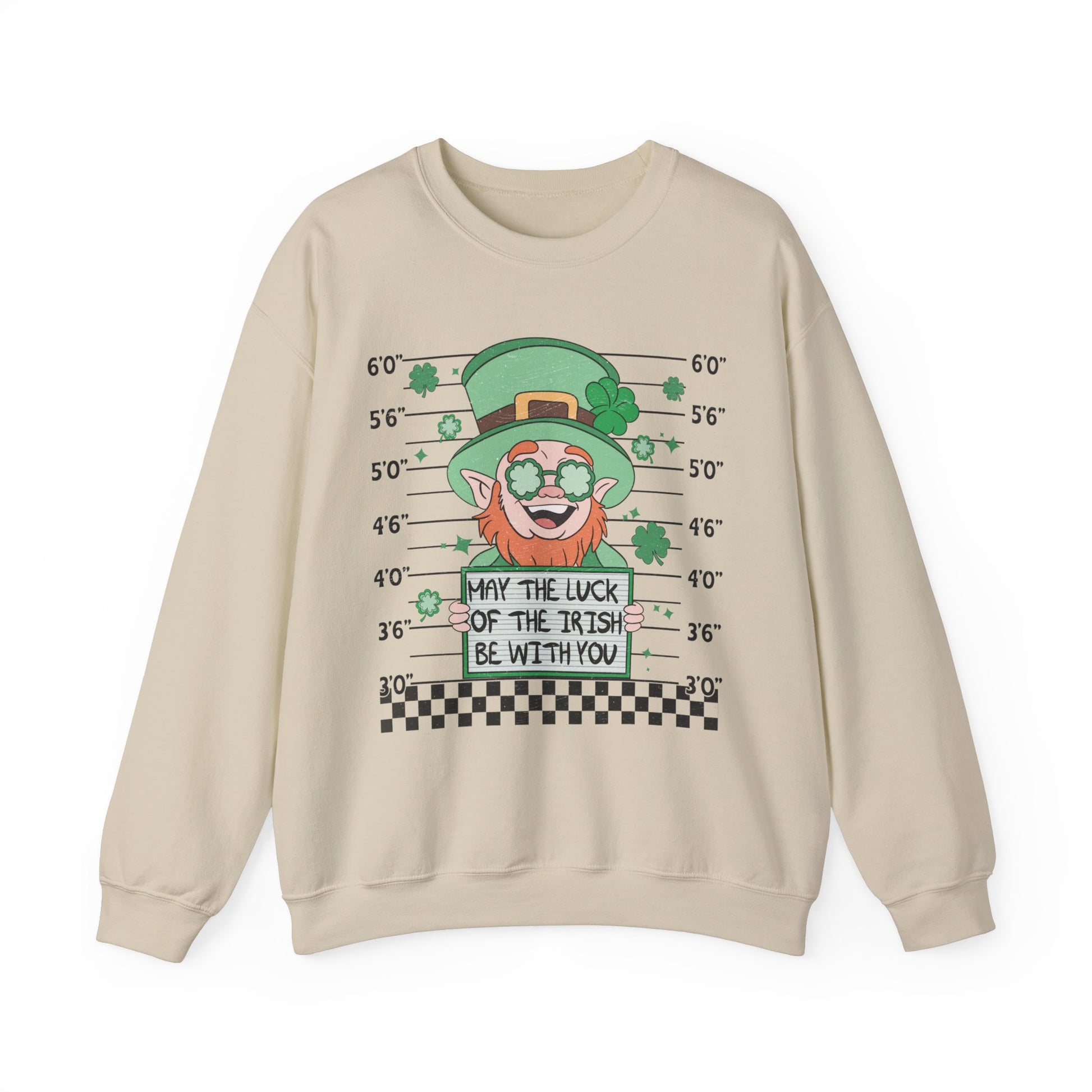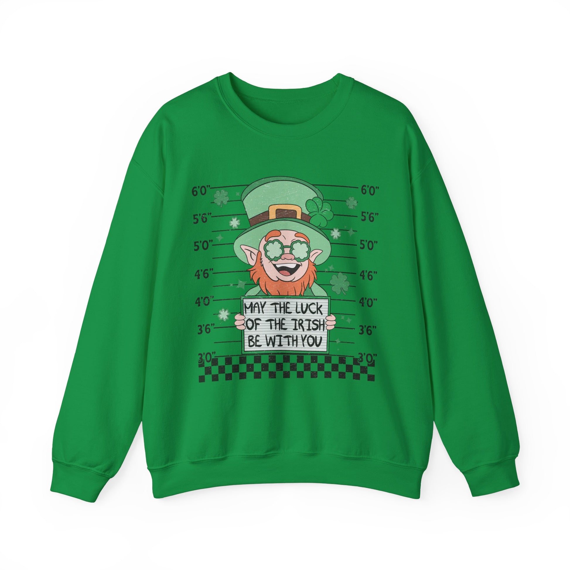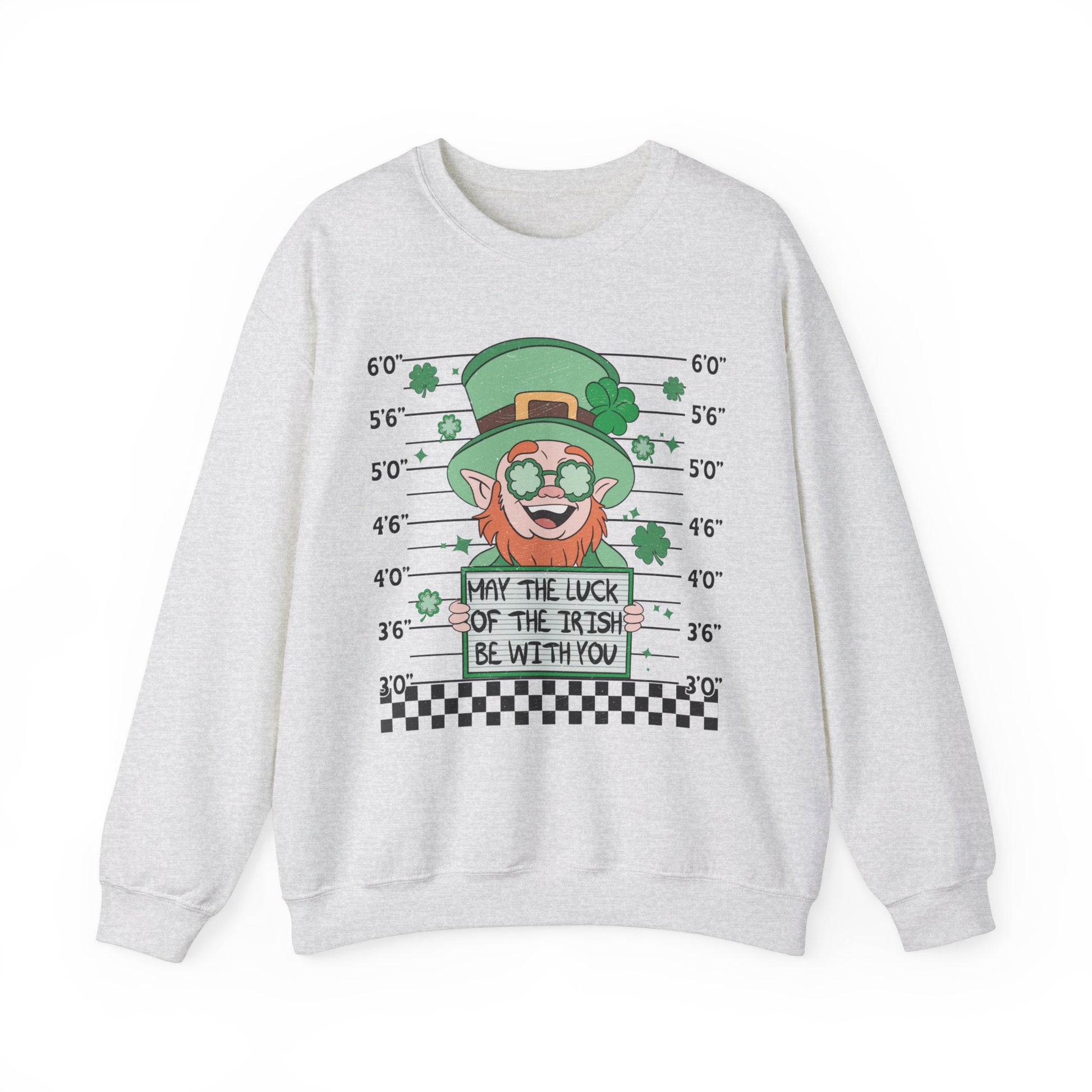 This captivating sweatshirt combines the mischievous charm of leprechauns with the luck-filled spirit of Saint Patrick's Day, making it a must-have for anyone seeking a touch of whimsy and Irish flair. The centerpiece of this shirt is a cleverly designed mug shot of a leprechaun, complete with a mischievous grin and a twinkle in his eye. Surrounding the mug shot is the iconic saying, "May the Luck of the Irish be with you," serving as a reminder of the good fortune that accompanies this festive holiday.