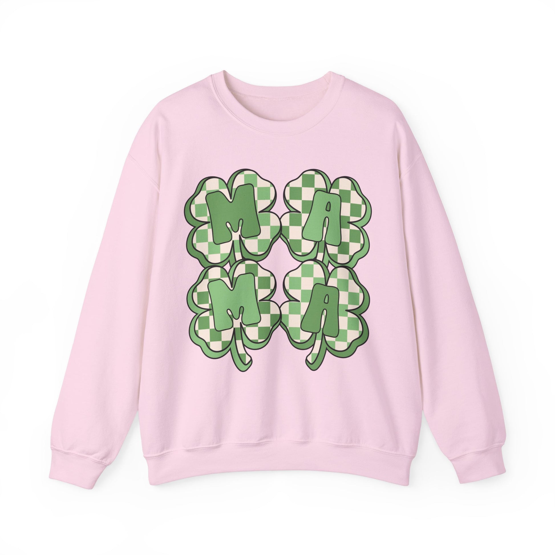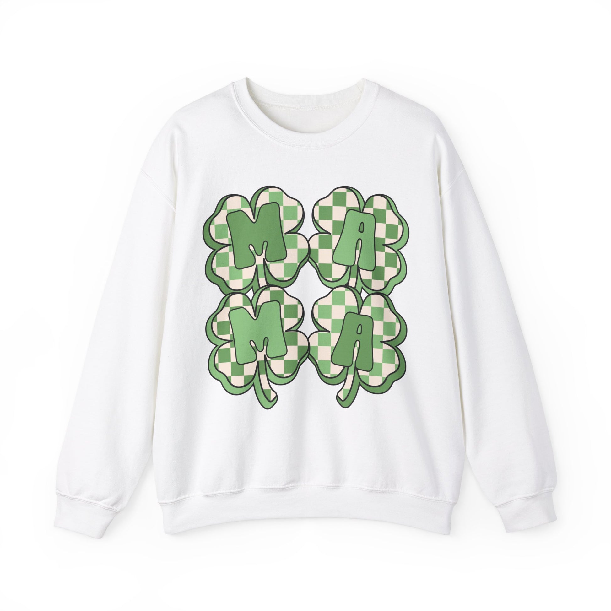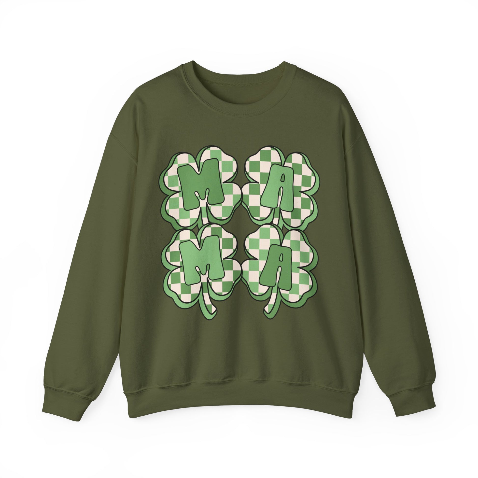 Celebrate St. Patrick's Day in style with our charming sweatshirt featuring four four-leaf clovers that spell out "MAMA." This unique design adds a touch of whimsy and luck to your holiday wardrobe. Crafted from premium materials, our sweatshirt offers both comfort and durability, making it perfect for all-day wear. Whether you're attending a festive gathering or simply want to show off your Irish spirit, this St. Patrick's Day sweatshirt is the perfect choice. Embrace the holiday spirit and showcase your love for all things Irish with our "MAMA" four-leaf clover sweatshirt.