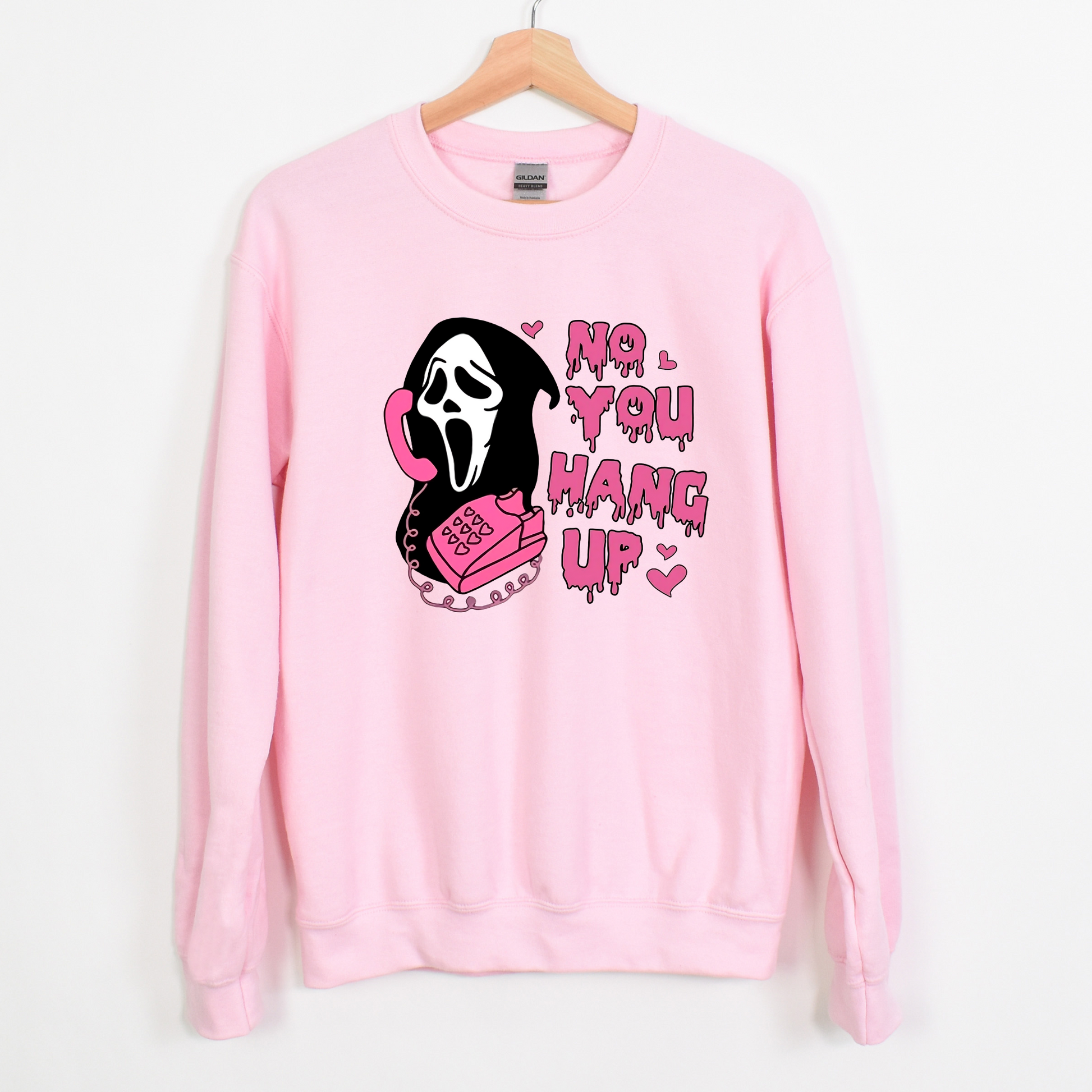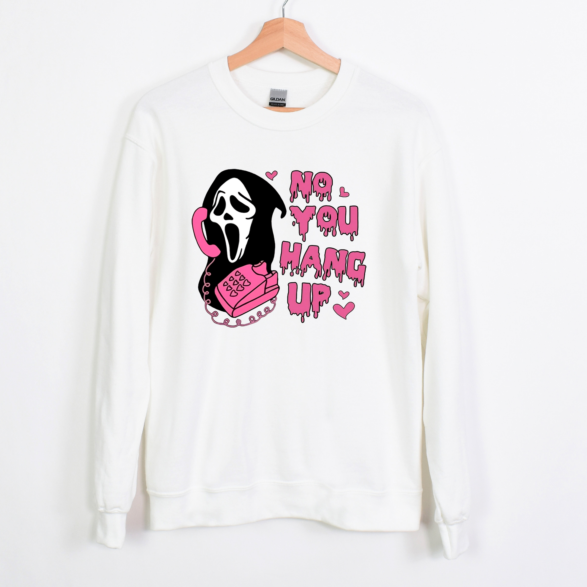 Introducing our "No, You Hang Up" Scream Movie Quote Sweatshirt – the ultimate homage to the iconic horror film that sent shivers down your spine! 👻📞