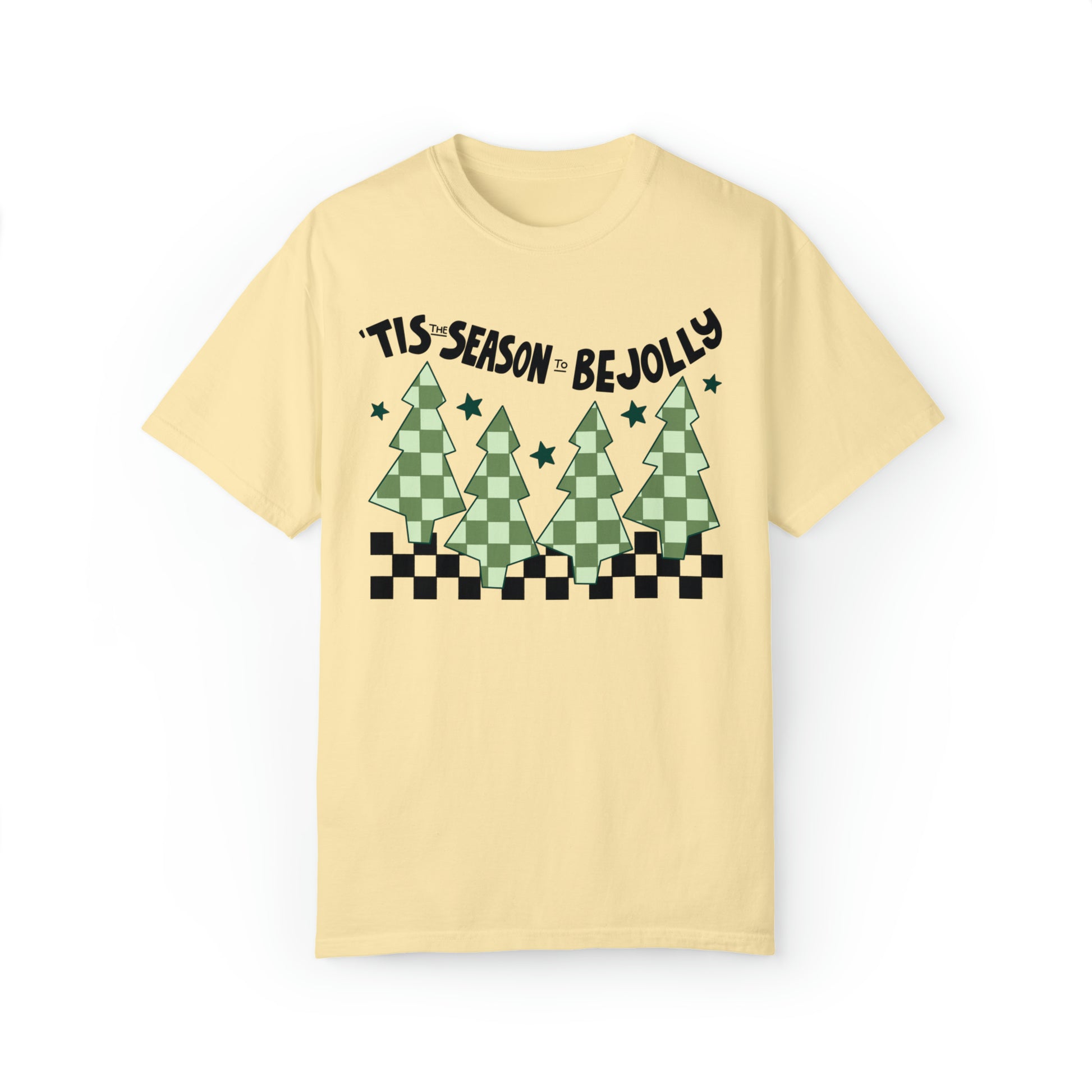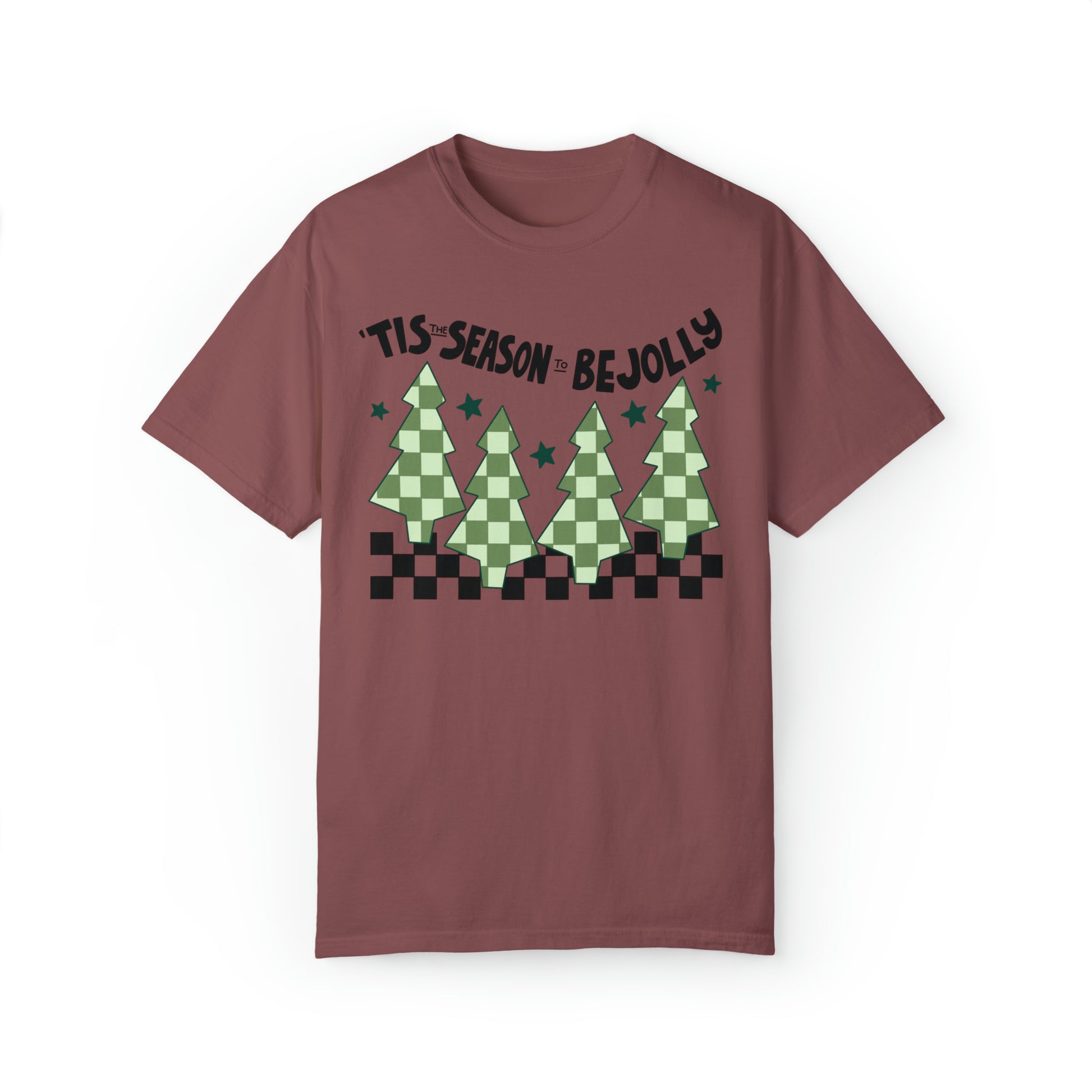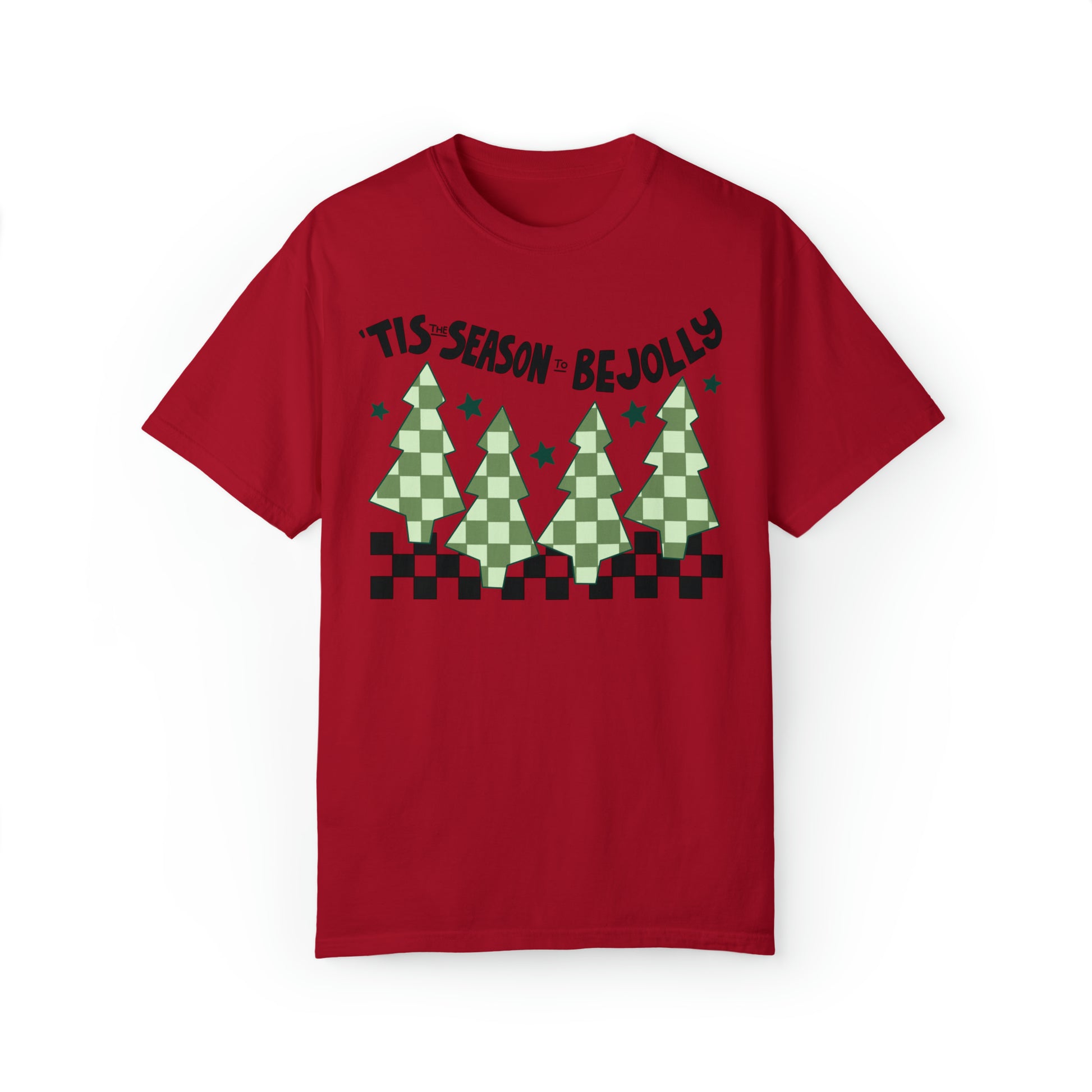 Tis The Season To Be Jolly Checkered Christmas Comfort Colors Unisex Garment-Dyed T-shirt