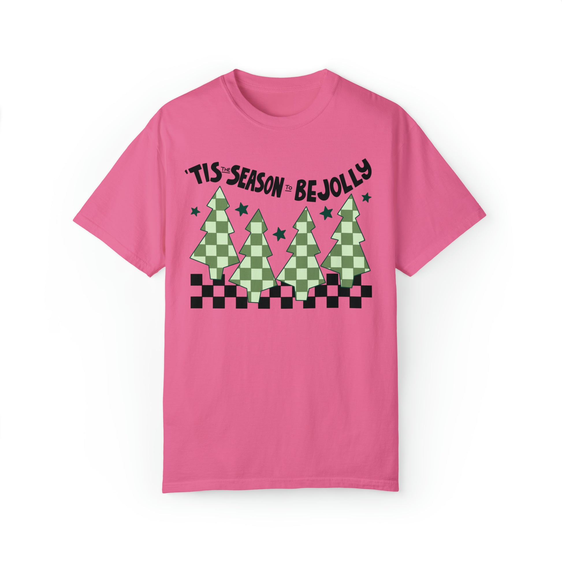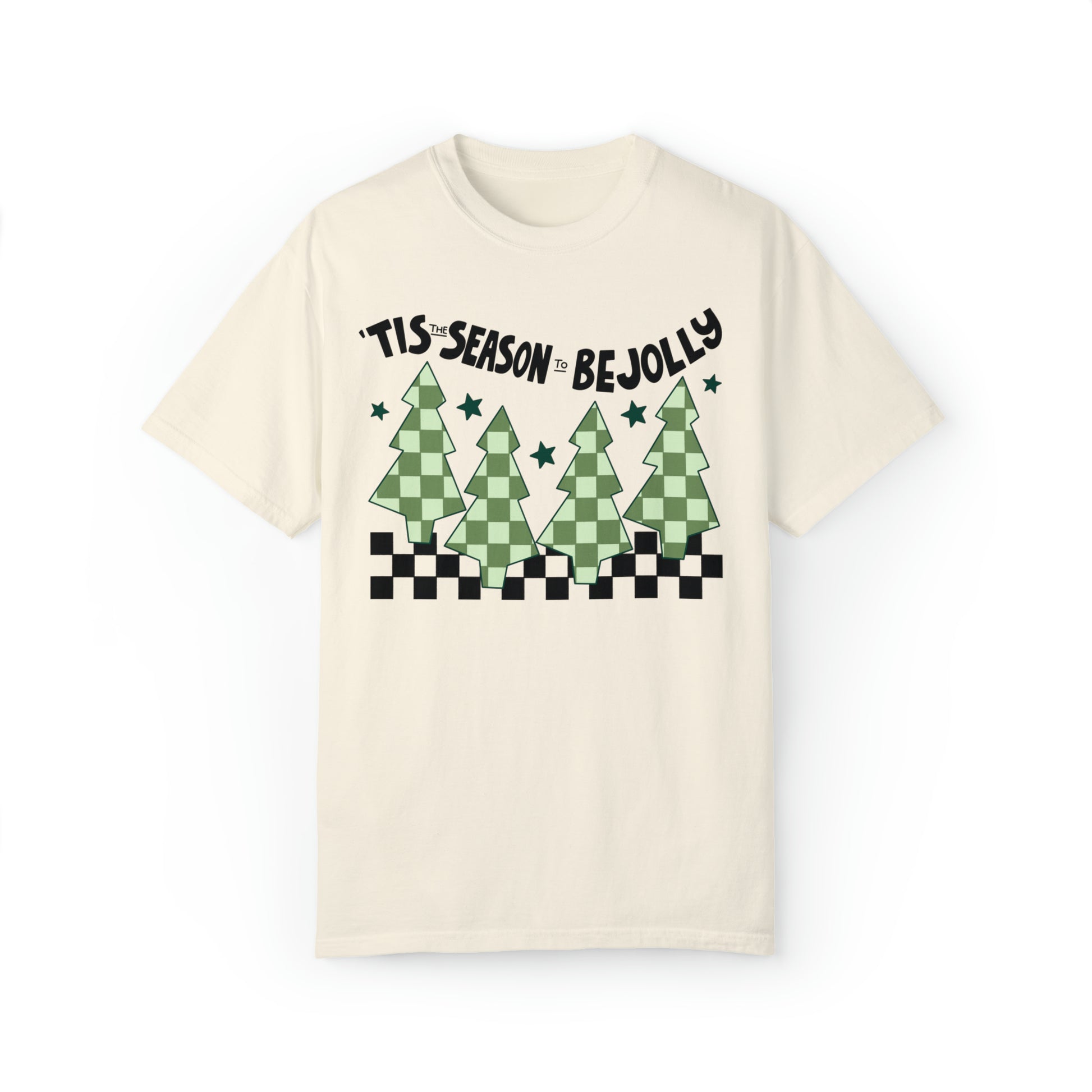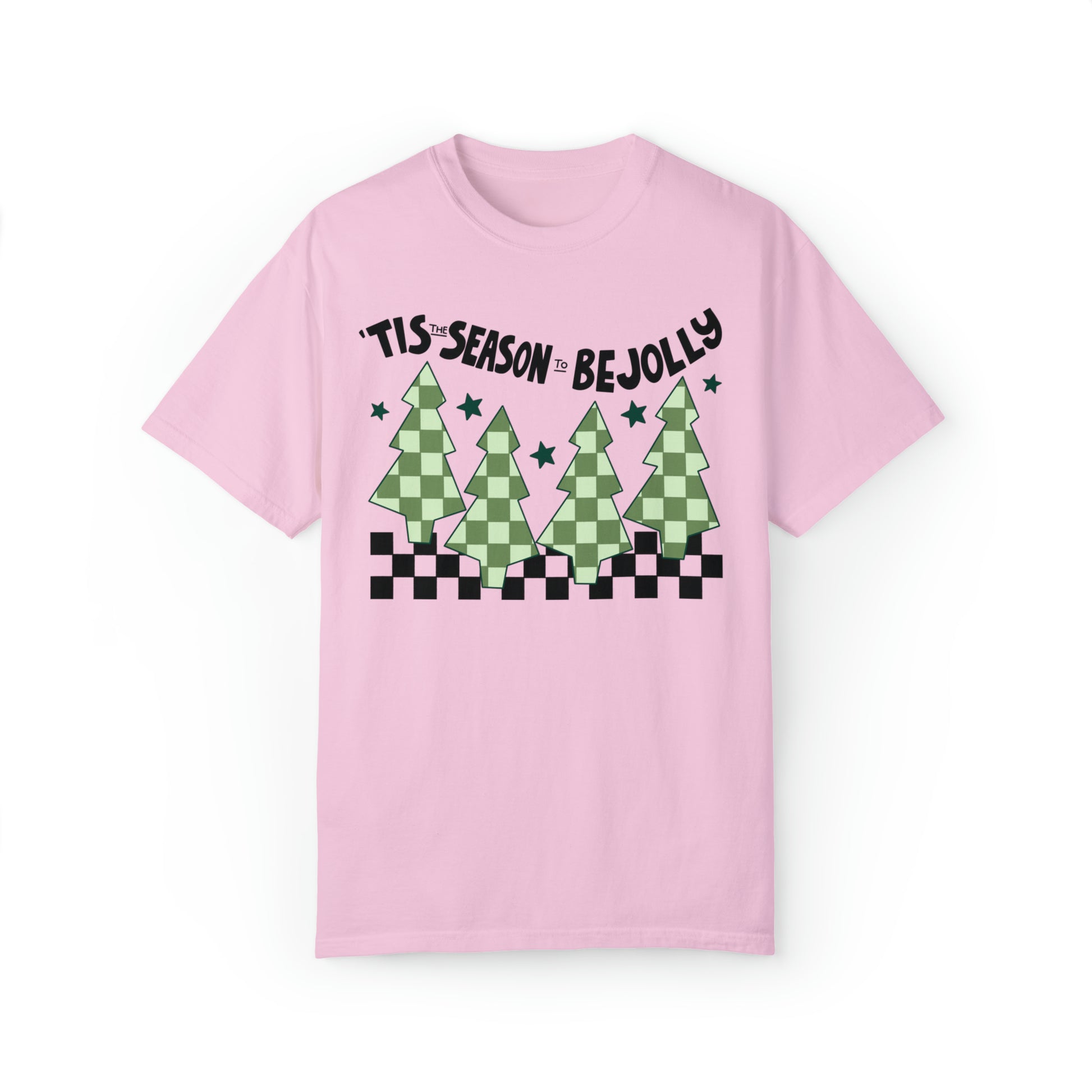 Tis The Season To Be Jolly Checkered Christmas Comfort Colors Unisex Garment-Dyed T-shirt