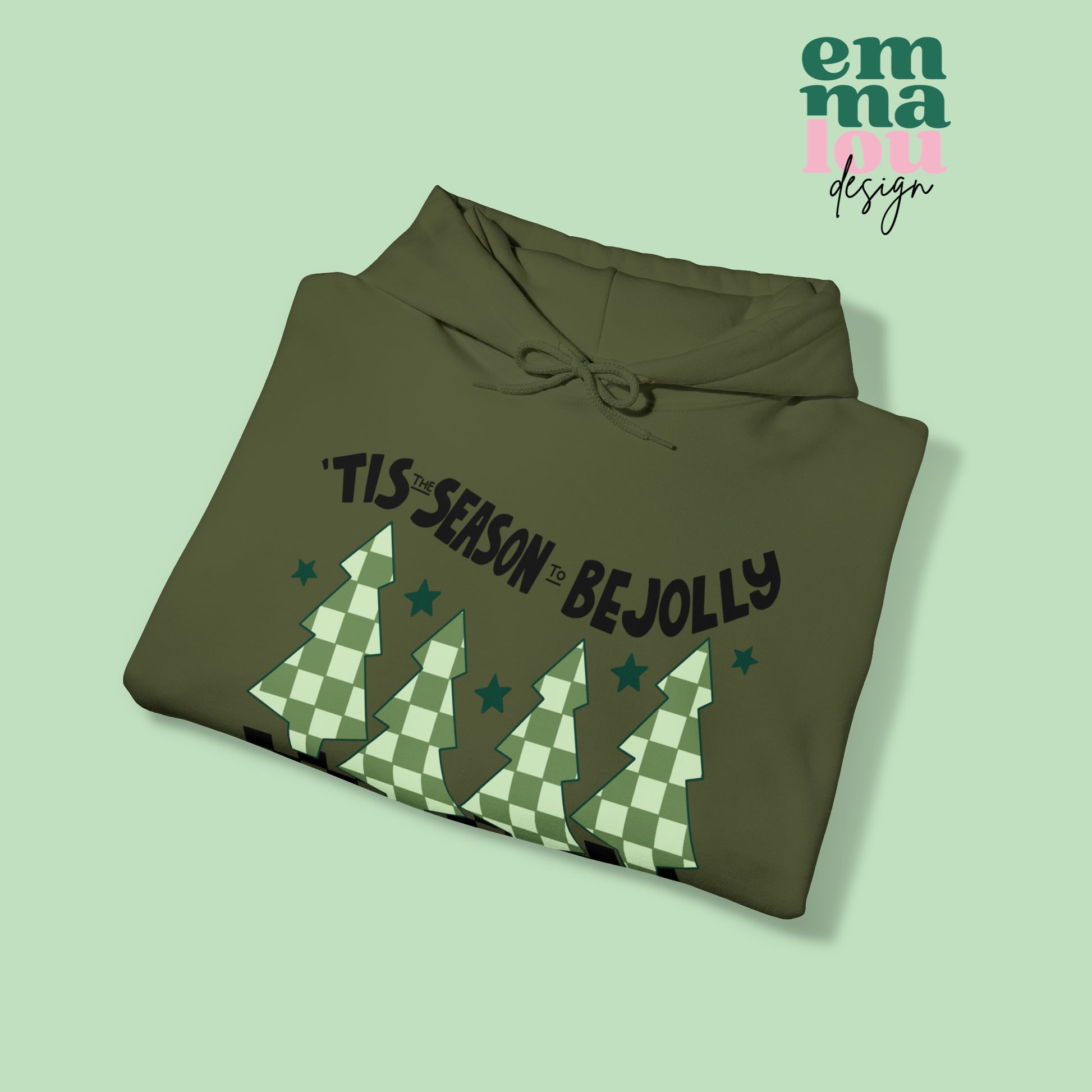 Tis The Season To Be Jolly Checkered Christmas Unisex Hooded Sweatshirt